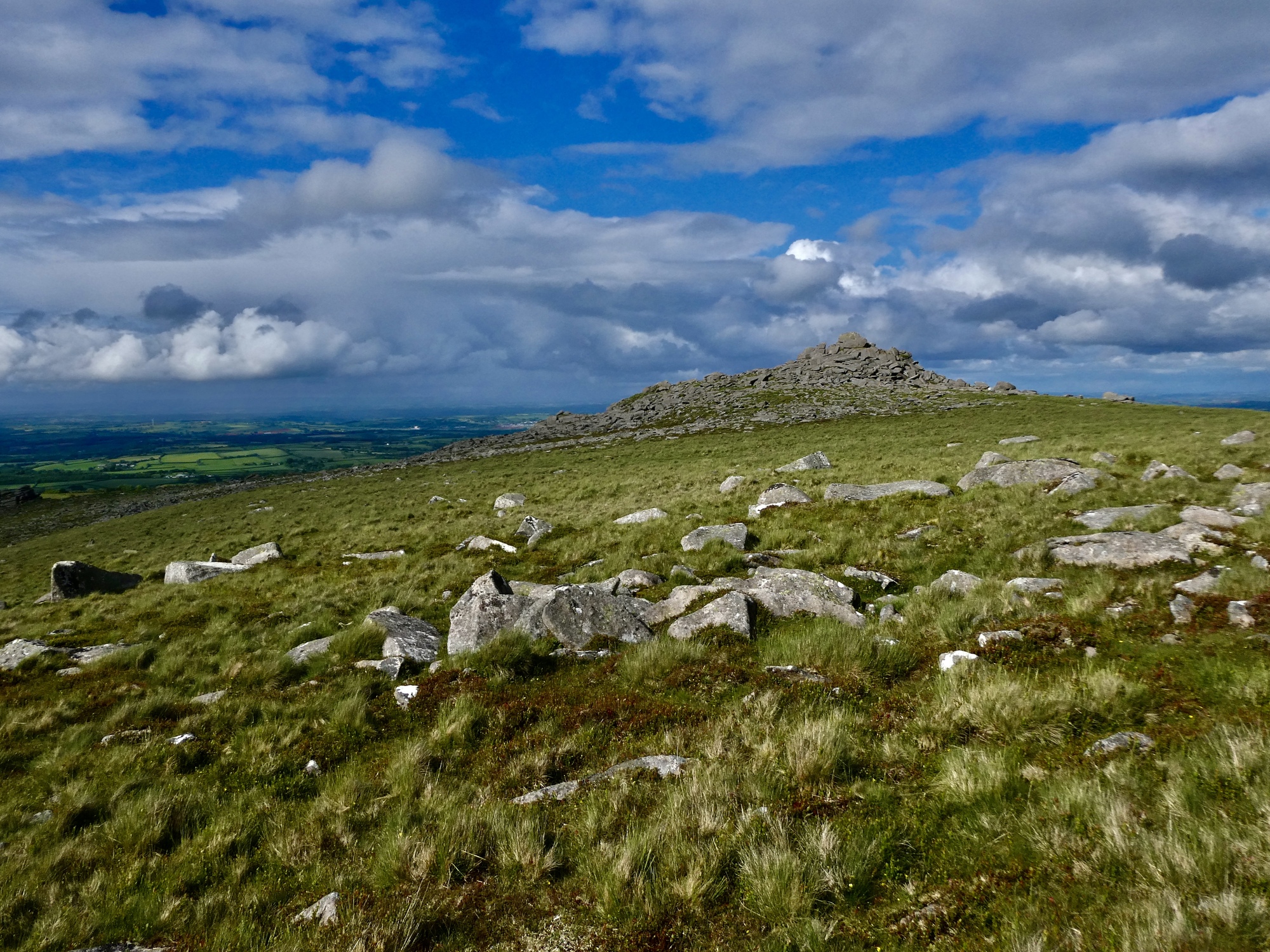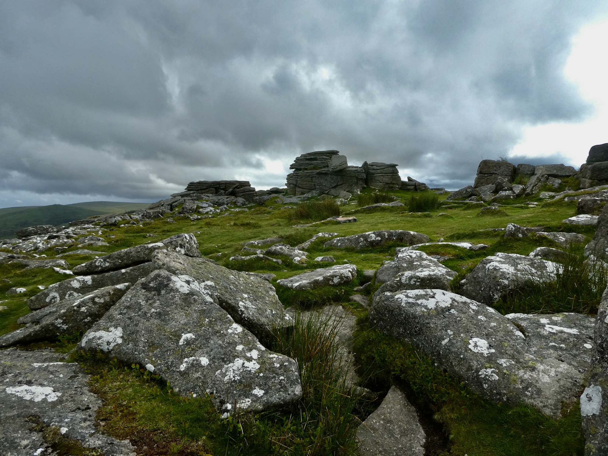 Just a brief description of the route, and then I’ll let the photos tell the rest. I’m following the crest of a low ridge carved by two small rivers - the Okement on the east, and the Taw on the left. The crest is marked by a series of high points defined by eroded granite piles, surrounded by slopes strewn with granite blocks. I follow this route gradually climbing past a few of these high points (tors) before reaching my high point, the aptly named Higher Tor. After that I drop off the ridge and follow a lower, better marked route beside the Okement until nearing the village again.