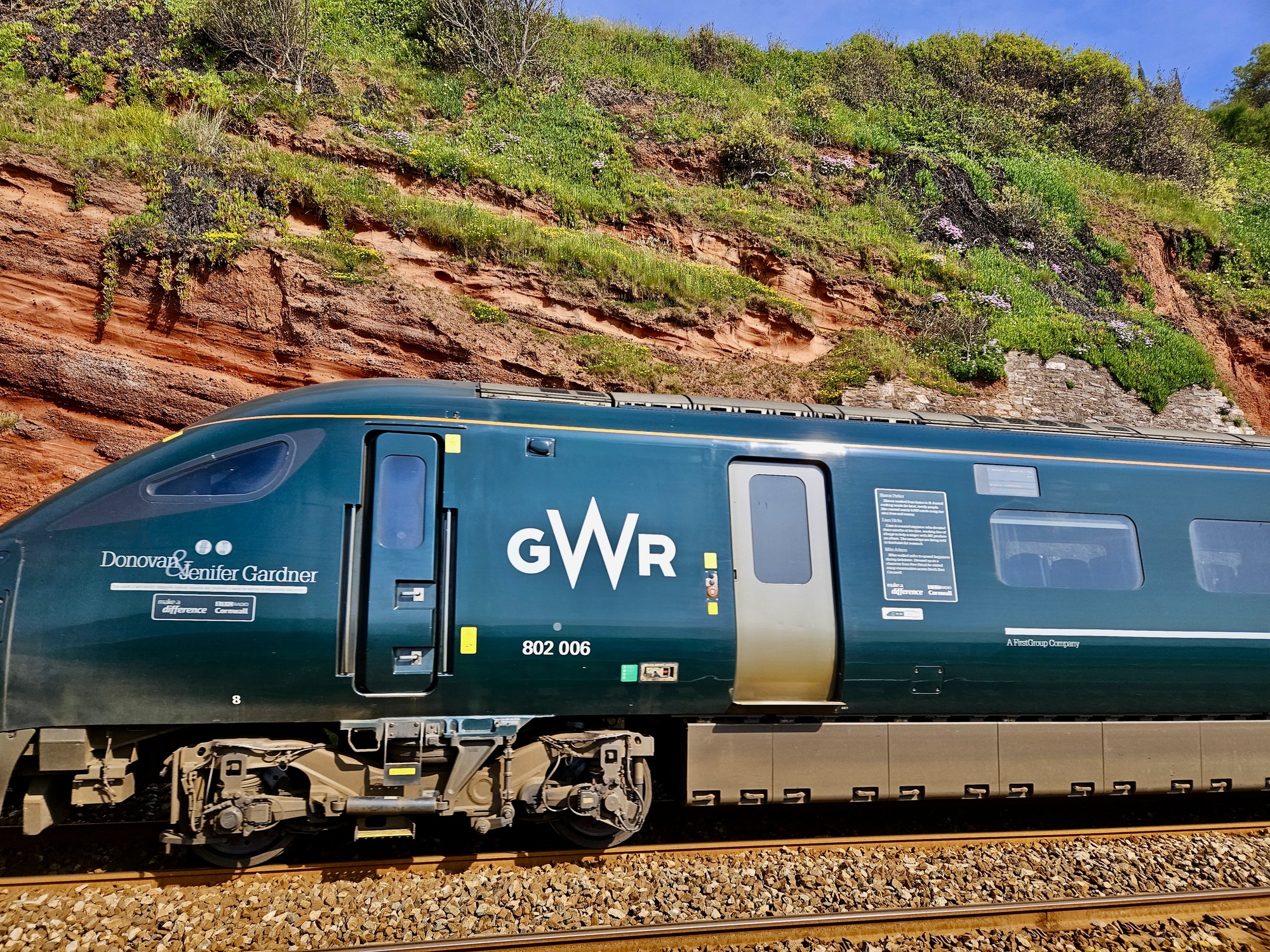 She leaves the hotel around nine, walks the half mile to Exeter Central, buys her ticket from the kiosk, and following my good example ends up with a round trip ticket also. A little wasteful, but we don’t mind supporting UK’s impressive train network. A half hour later I see on her Garmin email that she’s off the train and walking north, so I leave for my own ride.