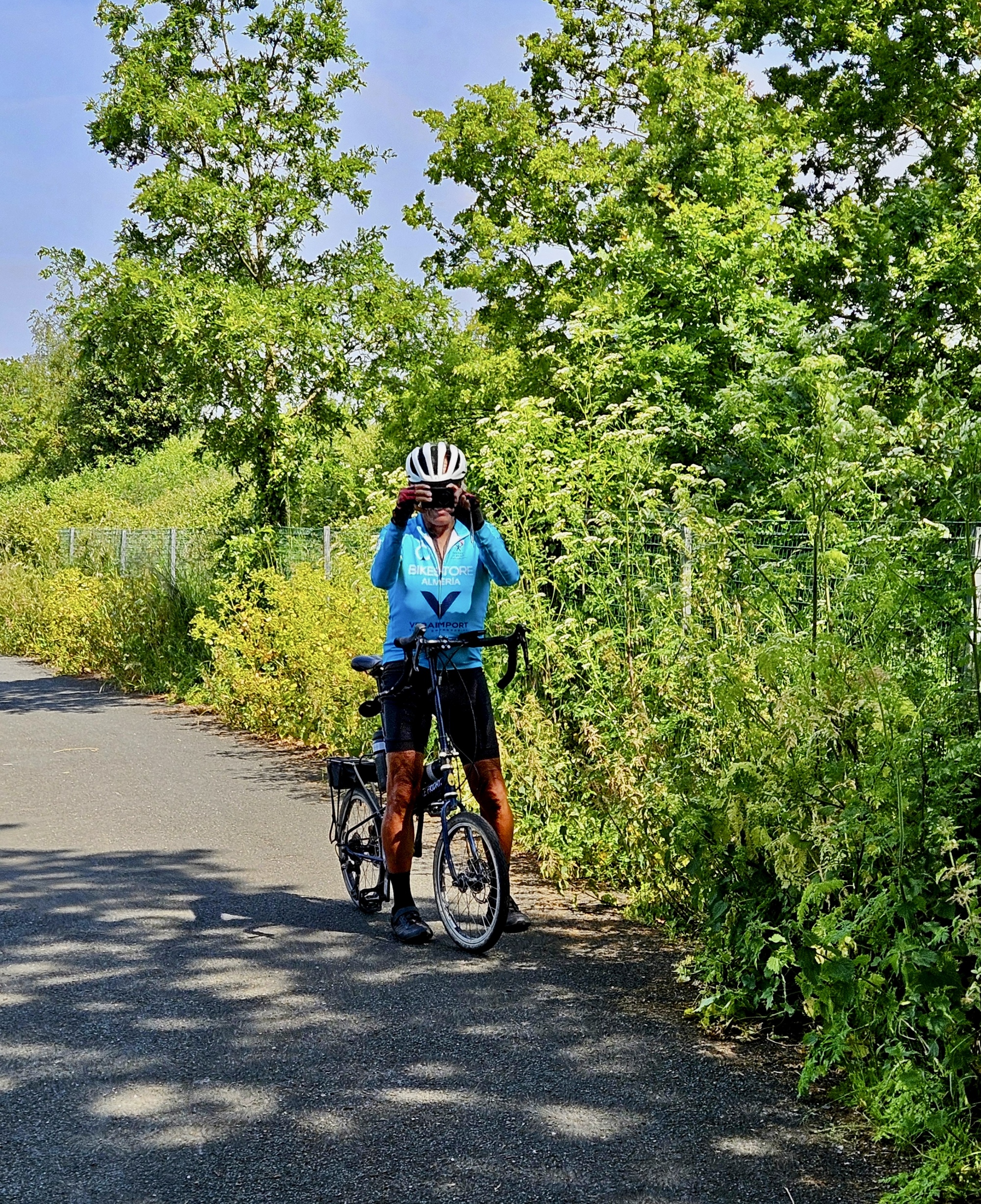 When she nears Dawish Warren the trail turns north, cuts off the long sand spit there, and comes to the west bank of the river a mile or so later. Not long after that she’s held up briefly on the road by an encounter with an intrusive biker heading the other way, and after that she continues north for another eight miles.