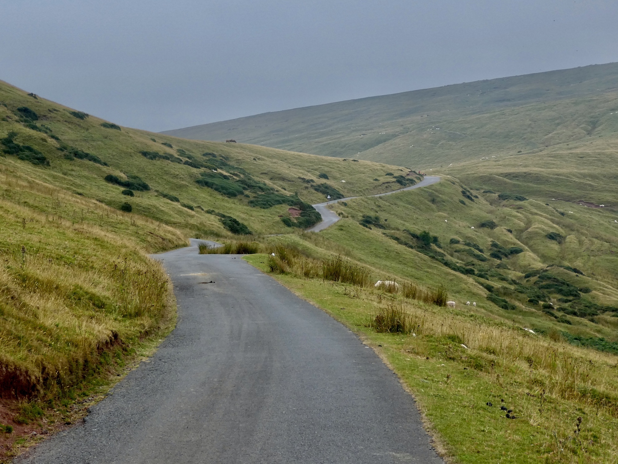 We’re on a quiet road, well paved, and wide enough so that we rarely have to stop or dismount to give way for a passing vehicle. For a long time we bike through the most characteristic setting of the region - a tunnel of green, walled in by hedgerows on either side and sometimes under the cover of overarching hardwoods. When we can see through or over the green wall though, the terrain around us is getting increasingly dramatic and even a little frightening as we see high ground all around and aren’t sure how our road is going to penetrate it. Its no problem though - we’re following the granule course of the Honddu River along the deep gap it’s carved into the Black Mountains.
