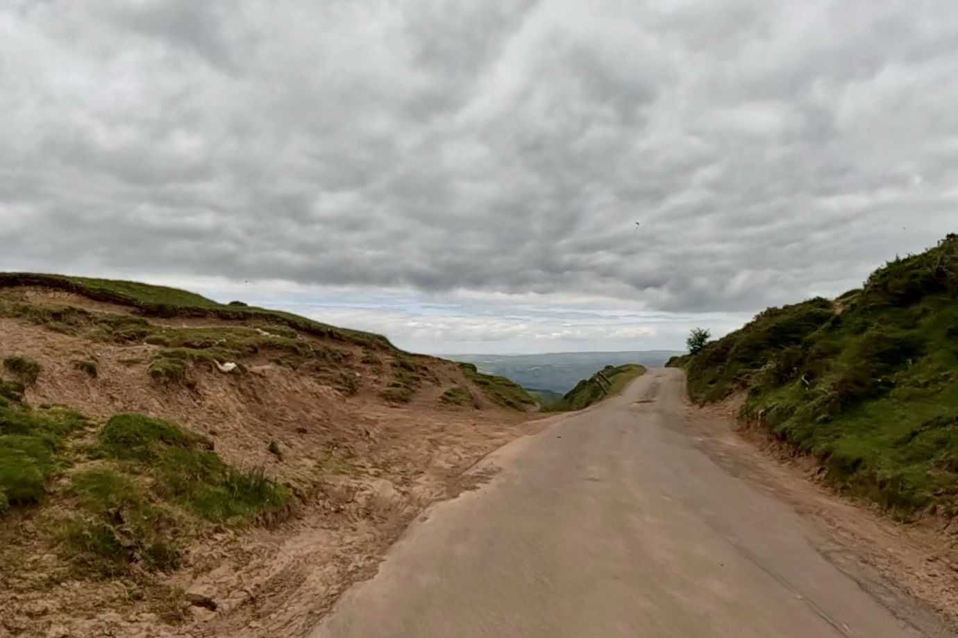 I don’t stay long, so I don’t think I’m really that far behind Rachael though I can’t say because we’ve lost reception up in these hills and I can’t track her location. I don’t want her to be waiting too long at the exposed, likely windy summit so I keep a good, steady pace - until I can’t toward the end when the fun ends and the road ramps up significantly. Surprisingly I’ve caught up enough that she’s in view and probably even within shouting distance, so she probably stopped off for a walk in the weeds somewhere.