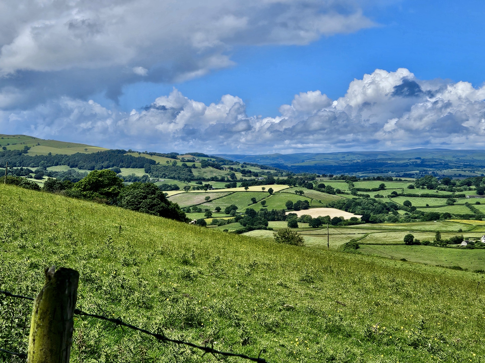In spite of the weather for the day looking potentially wet, I had a wonderful hike and stayed dry! I ended up on a trail, the Wye Valley walk, that had a lot of sheep and a great walking path. The path went through opens fields with sheep right on the trail and got up to a high point with great views in all directions. Just my kind of hike!