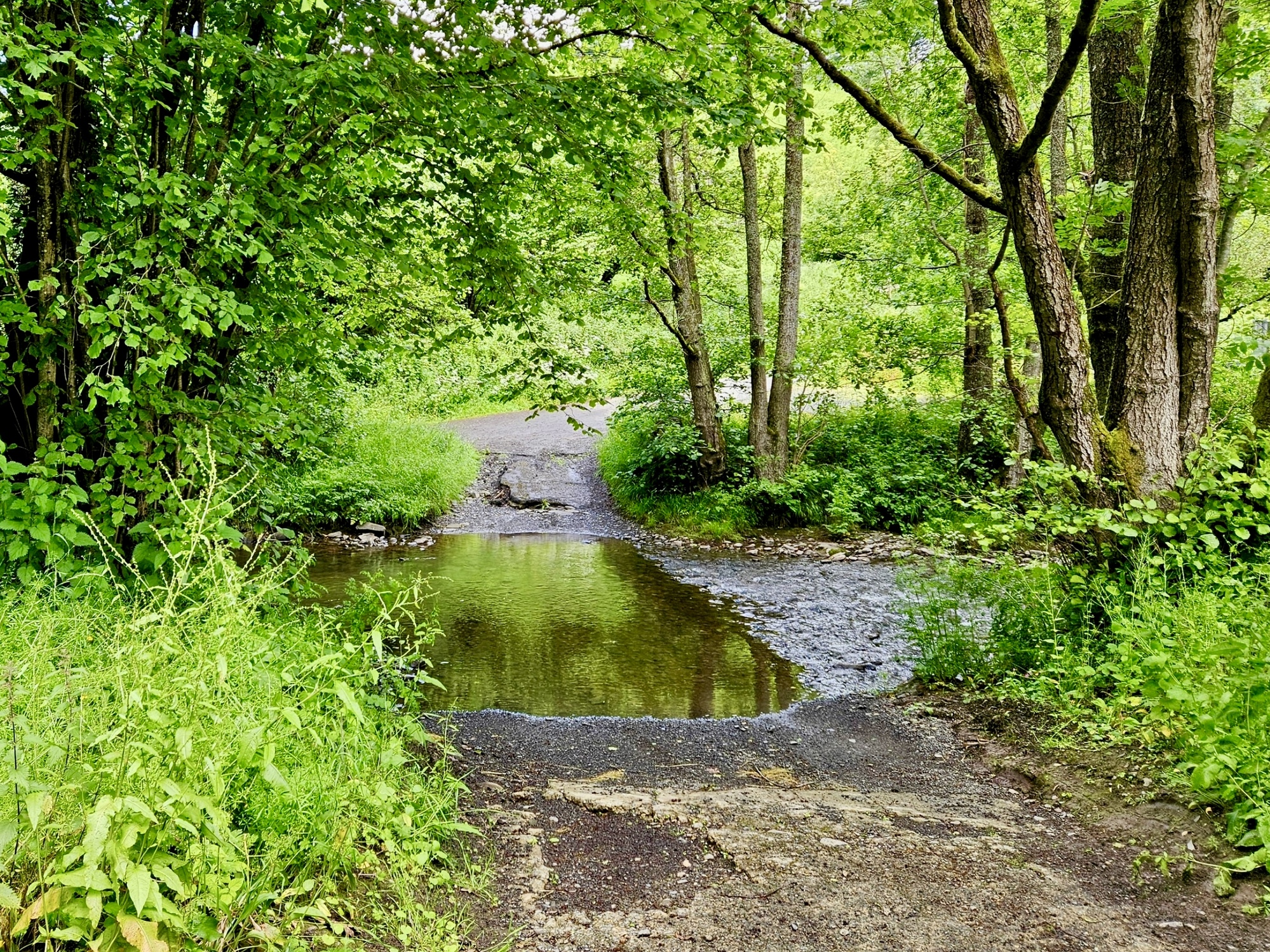 This is another day where we’re happy that we’re laying over. It’s grey and wet when we wake up, it’s due to be grey and wet again by midafternoon, but in between it looks like if we’re lucky we’ll get four to five dry hours for our walk and ride we’re hoping to get in. Oh, and it’s unseasonably chilly so we really wouldn’t want to get started early anyway. “This weather is ridiculous, summer’s never going to come”, a woman complained to us yesterday.