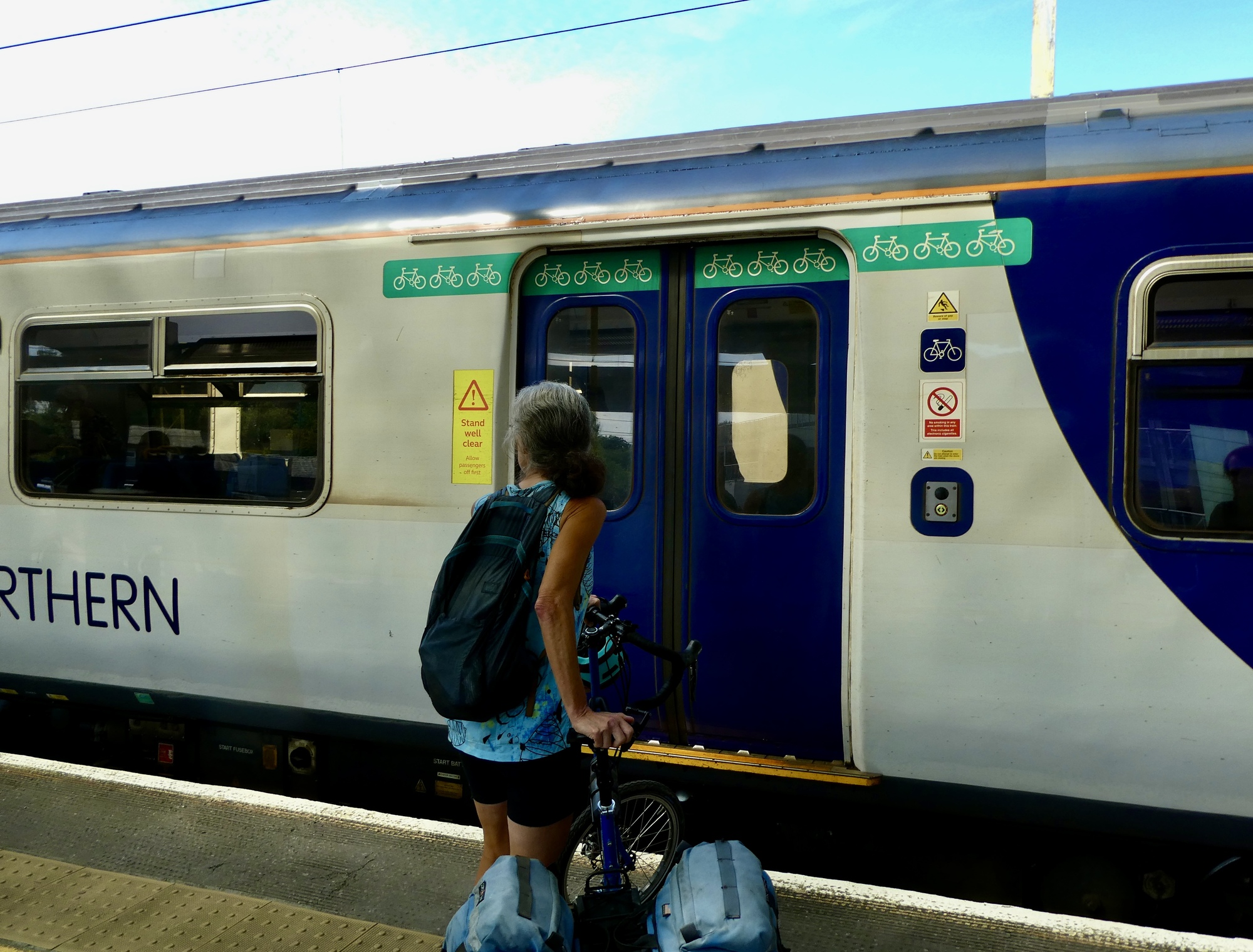 A train journey with two connections leaves plenty of room for something to go south and for things to descend into chaos, but I’m happy to report that nothing of the kind happened. All three train services (Transport for Wales to Crewe, Avanti West Coast to Preston, Northern to Colne) treated us and our bicycles well, and we were met with courtesy and consideration all along the way. We were very impressed.