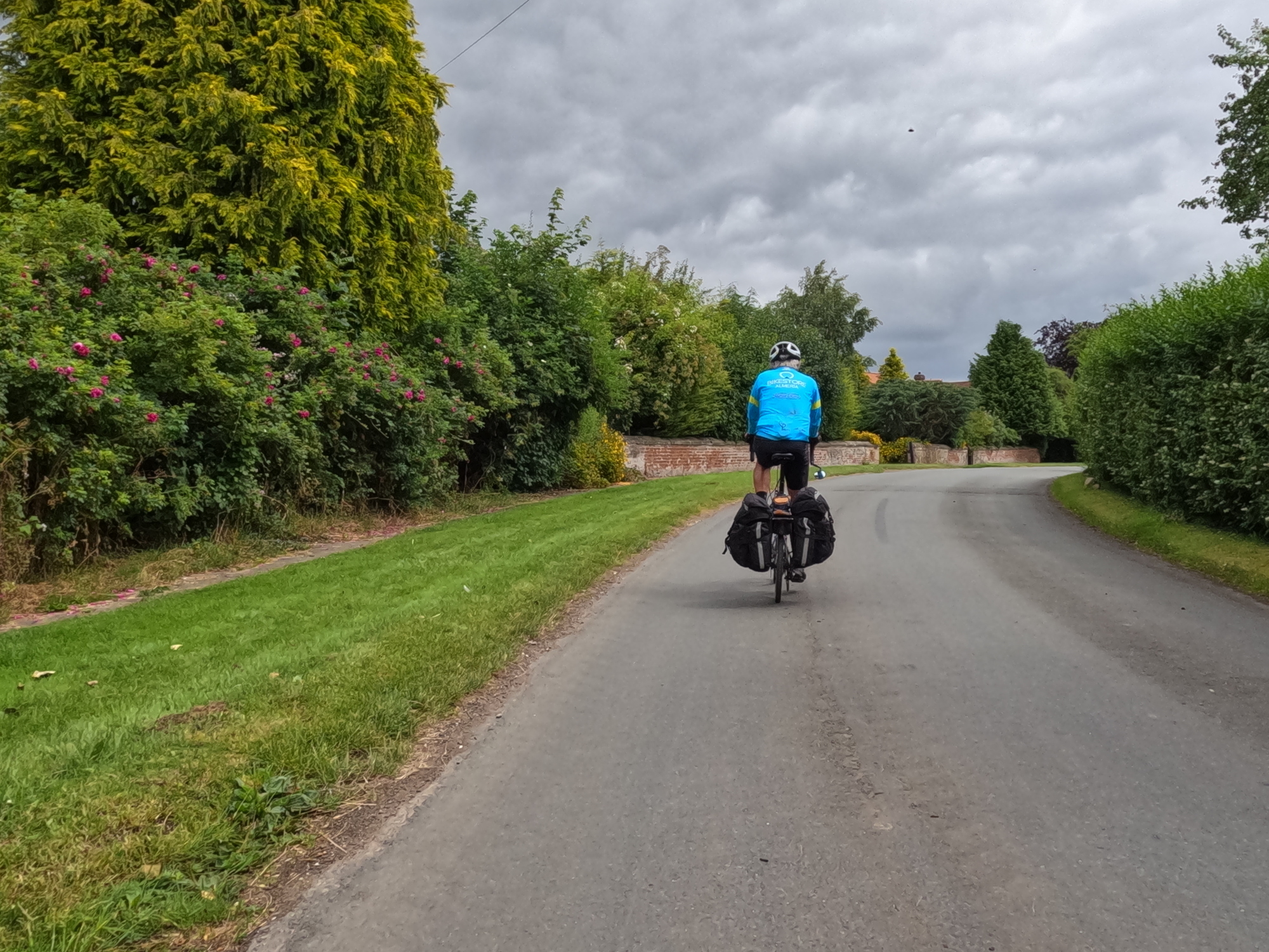 We have one interesting encounter here though when a faster biker passes me. I see his shirt though and yell out ‘Bright’ to him, and he slows down and rides with me a ways. He’s from Bright, down in Australia in the hills east of Melbourne, a place we’d planned to visit fifteen years ago until fires scorched our plans. He’s just sold the homestead after living there for twenty years and is up in England exploring his options.