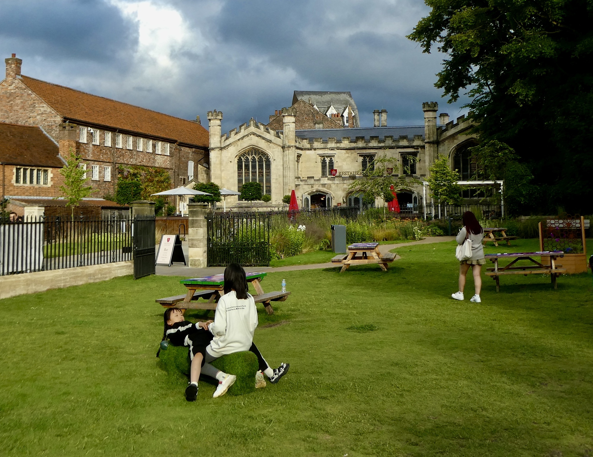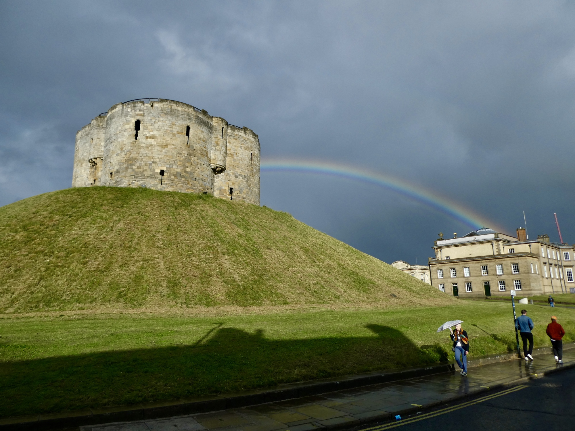 We’re just leaving dinner at the Olive Garden (not one of those Olive Gardens - this one’s a small place run by southeast Asians with an Asian sound track to accompany your Italian mains) when I look across the and see two things - it’s raining all of a sudden and there are a few umbrellas open; and there’s a rainbow arcing behind Clifford’s Tower, the city’s iconic landmark fortification built by William the Conquerer in 1190 to subdue the rebellious north.