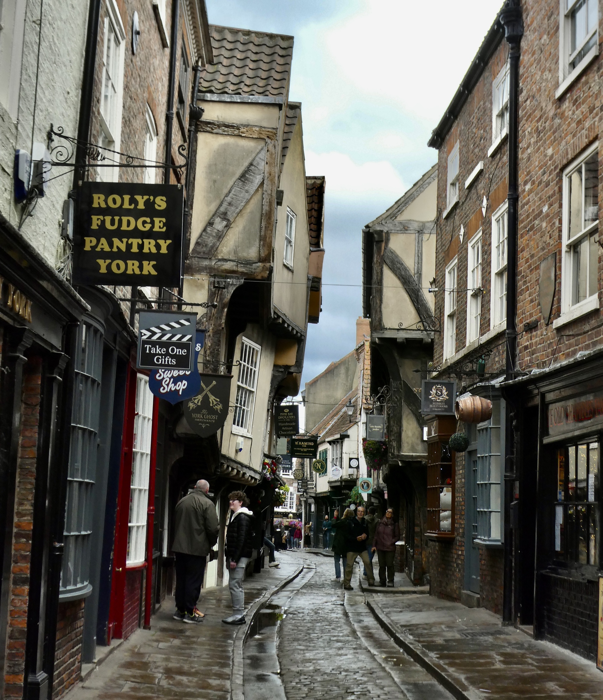 The Shambles: The ancient street of the Butchers of York. mentioned in the Domesday Book of William the Conqueror.It takes its name from the word Shamel. meaning the stalls or benches on which the meat was displayed - later versions of which can still be seen. It was rebuilt about 1400, when it assumed its present character.