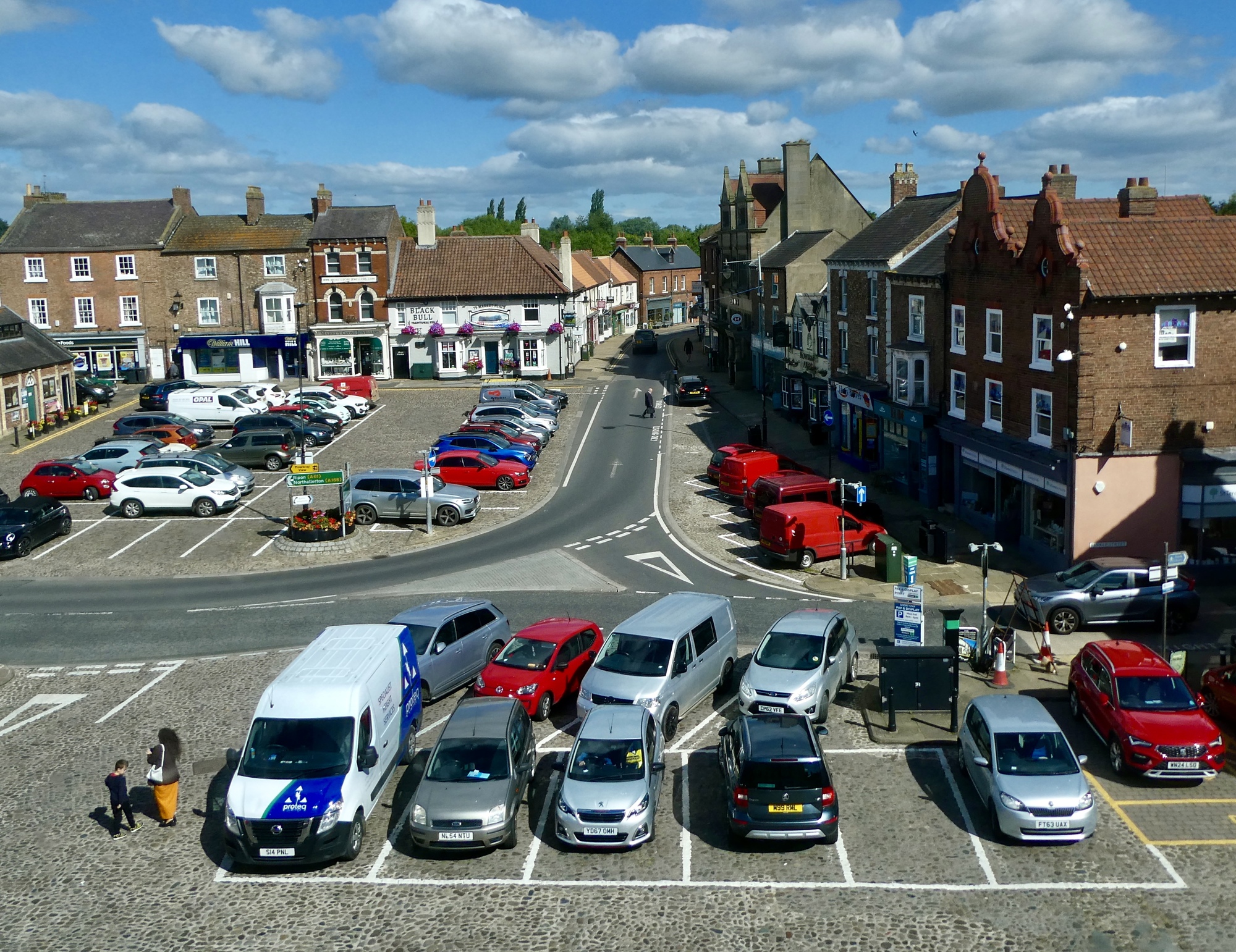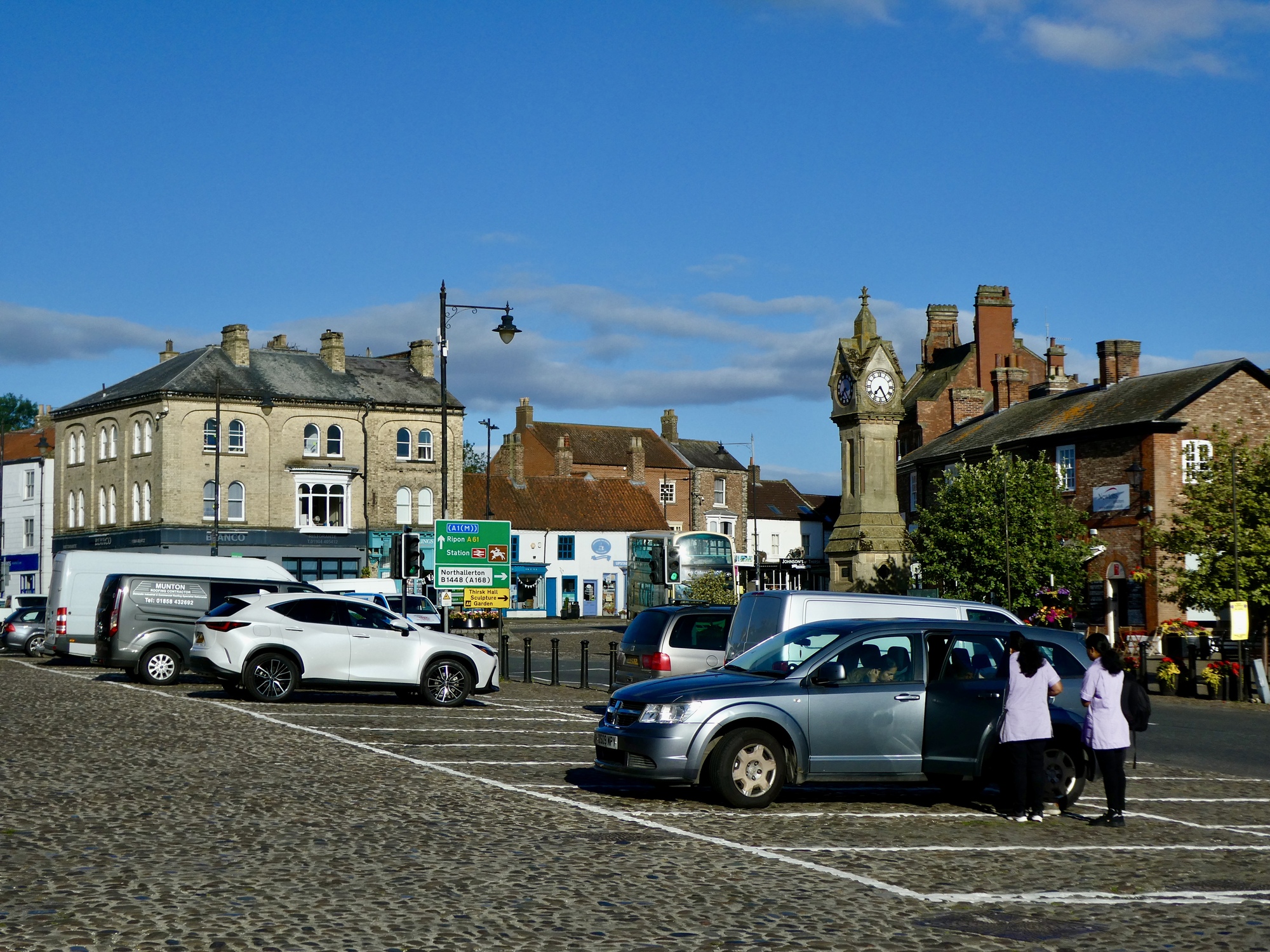 Thirsk is a small market town, but folks might have heard of it because it was the home of author and veterinarian James Harriot (All Creatures Great and Small, etc). Which makes it sound like it would be a charming place but for us but it’s not. Too damn many cars in too small of a space. It reminds us of Marlborough from two summers back. Places like this really need to reroute the highway that runs through the heart of town to make them livable.