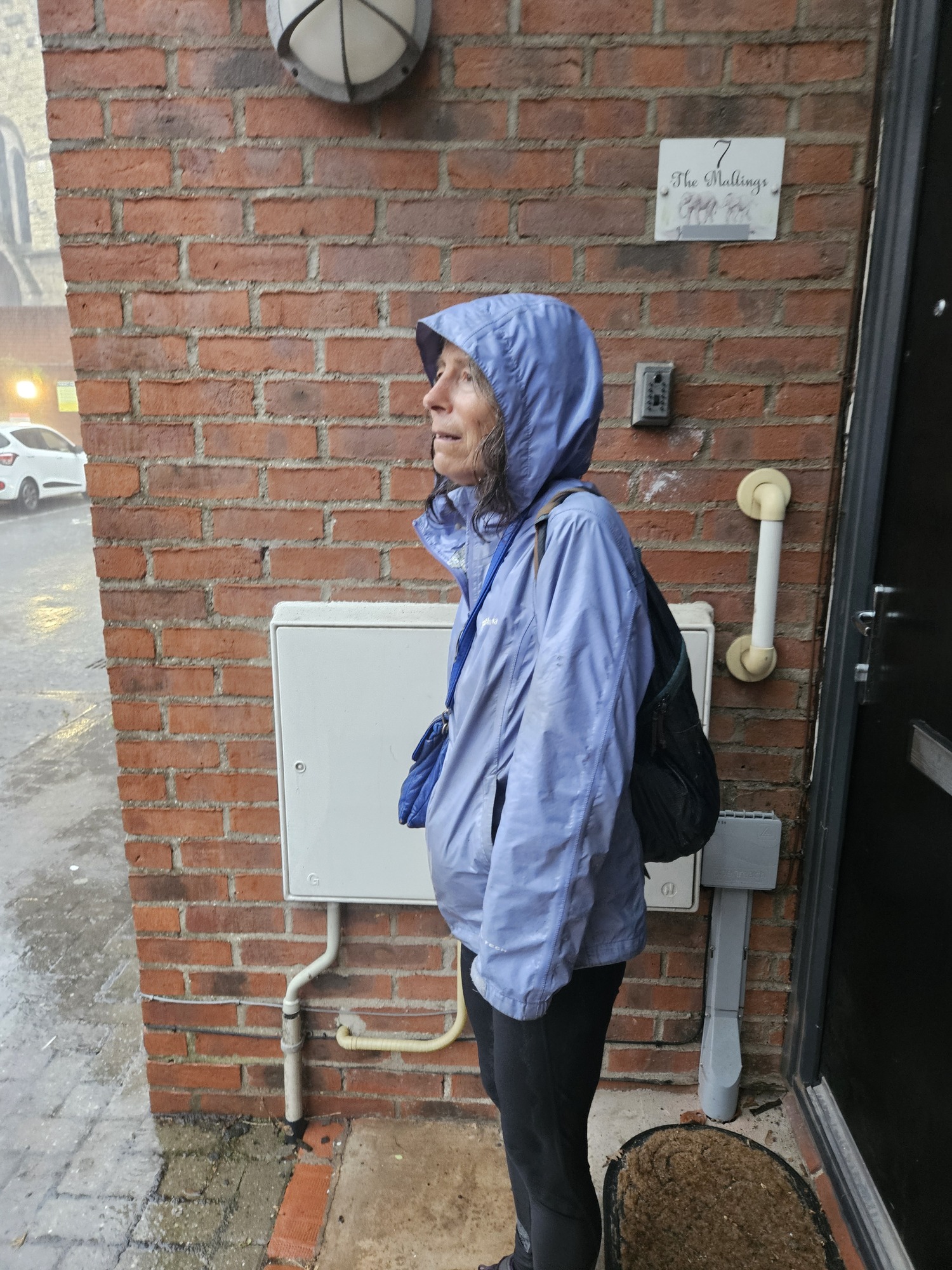 She speculates on whether there’s someone in the village with a van she could call to give us a lift to Malton, but there’s no need for that because right about five the weather breaks and we have what looks like a dry two hour window, enough to see us through. We’re on the road as soon as the rains stop, descending out of town on the unflooded route. Everything is bagged for protection from the rain including the phones and cameras, so there are no photos to remind us of the ride - easy, reasonably quiet, and reasonably dry once we make it through a worrisome fog-like mist that dampens us for the first mile or two.