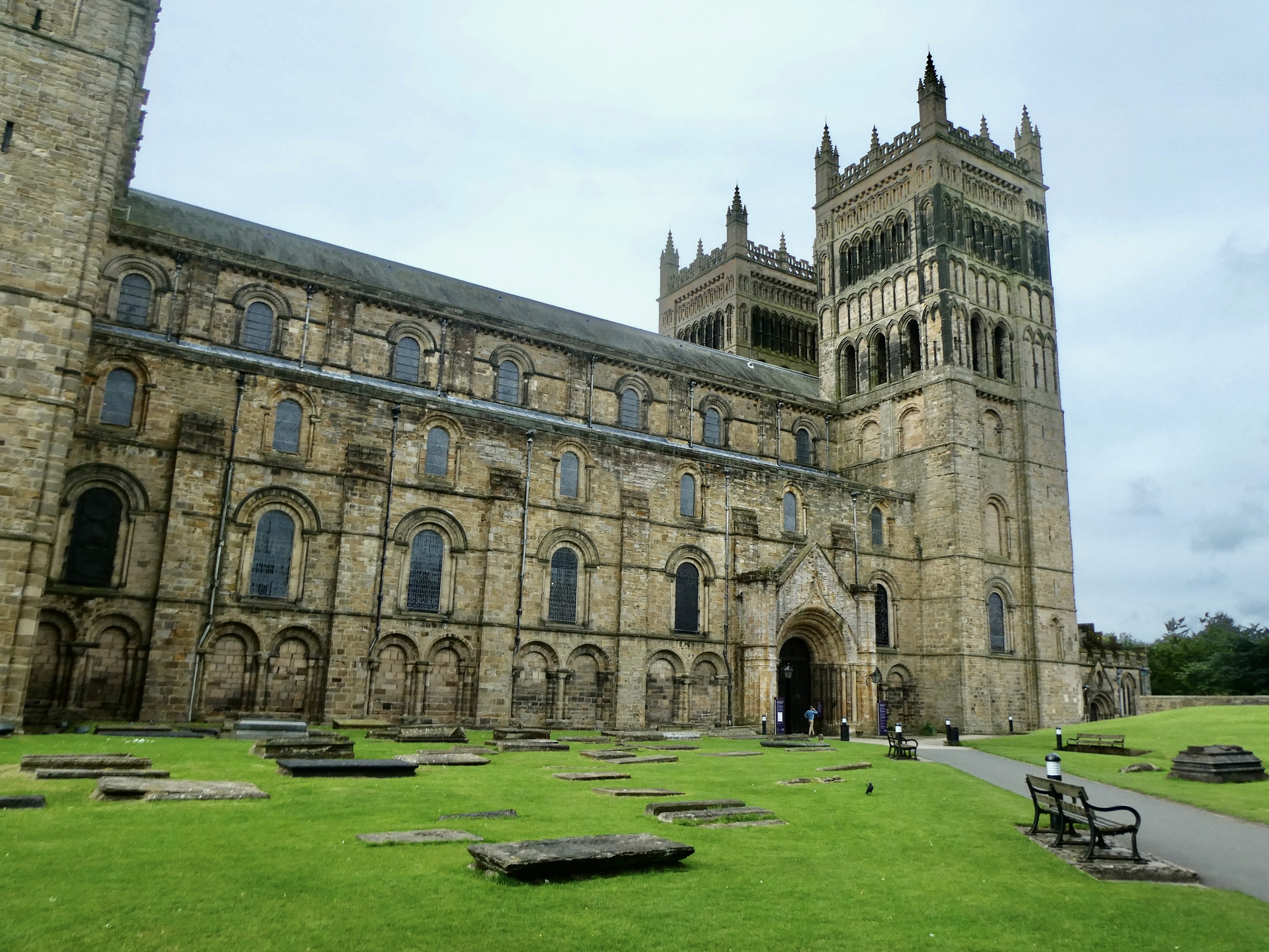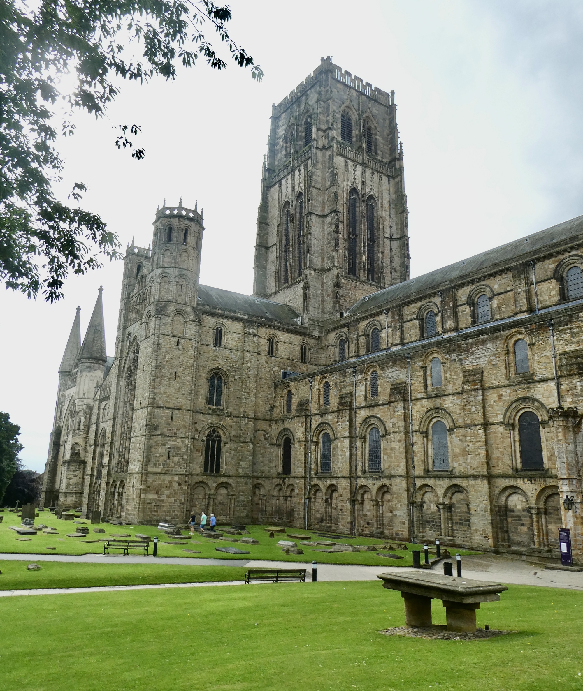 If you’re anywhere near as ignorant about Durham as we were coming in you might want to read up on its complicated history, at least to the extent of learning that the city was founded in 955 AD BY Northumbrian monks looking for a safe refuge for the relics of Saint Cuthbert to protect them from the Vikings. They found one in a tight meander of the River Wear (which our local domain expert informs us is pronounced like weir, not ware). You might take the next step to learn that Northumbria was once a kingdom, one that encompassed all of what’s now northern England and southern Scotland; and that Cuthbert was their patron saint. And jumping ahead a thousand years there are the essential facts that the cathedral and castle at Durham are now a world heritage site, and that the cathedral is an important site in the Harry Potter tales.