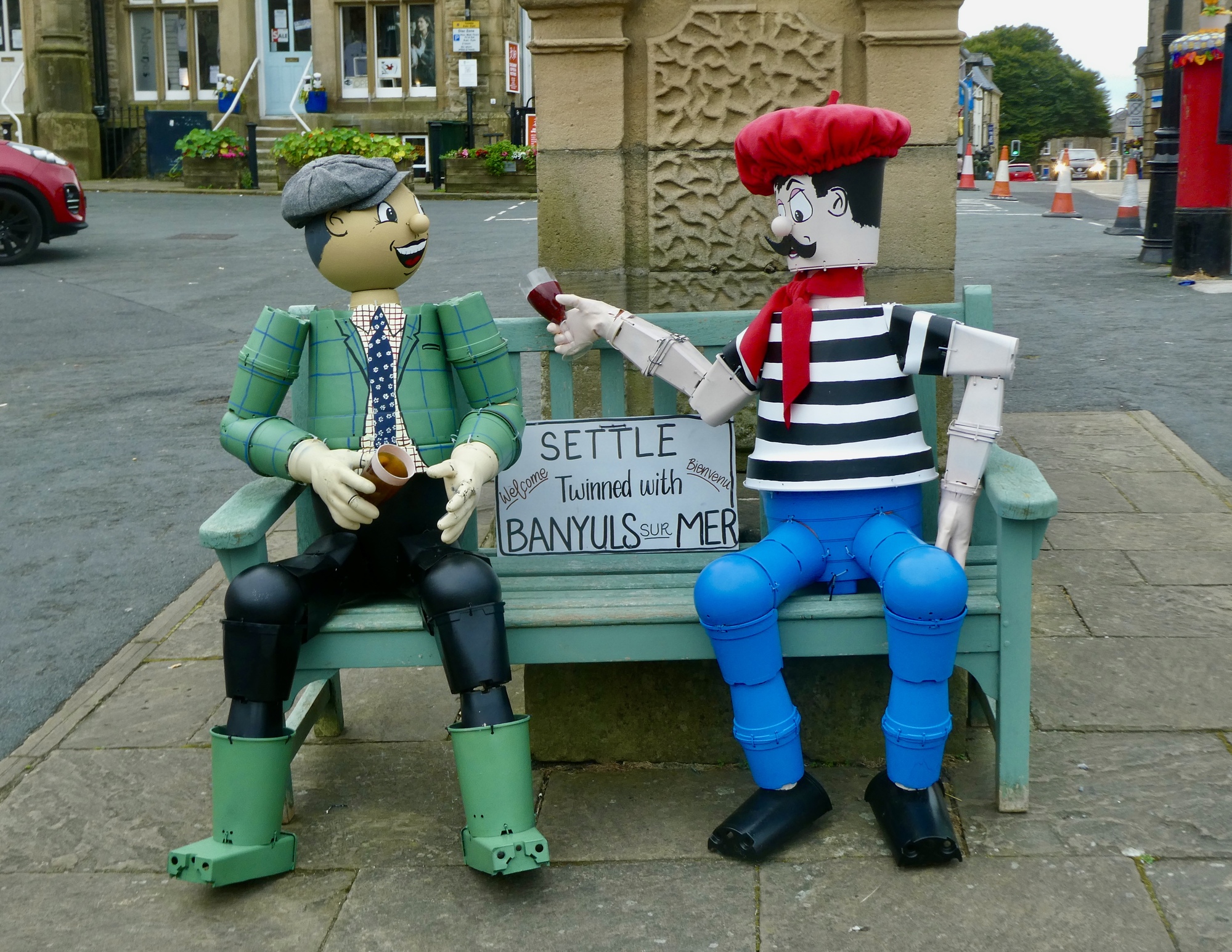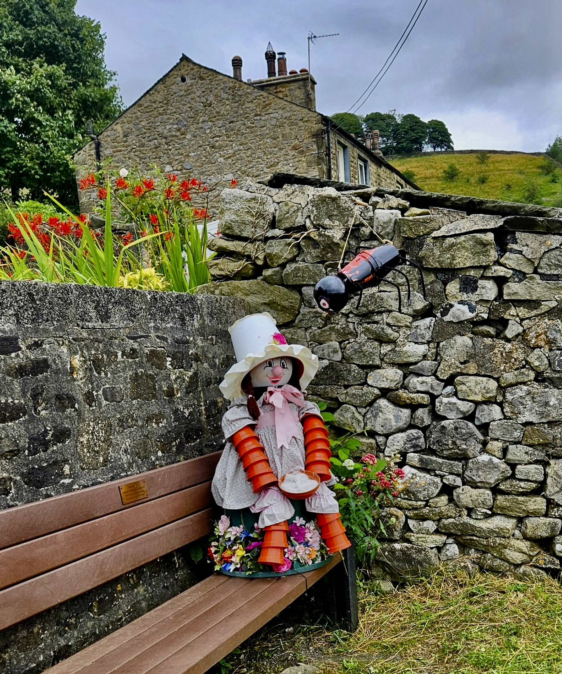 Settle is a small market town with typical features for this part of the country; but what spices it up at the moment is the odd street art you’ll see if you wander around and keep your eyes open: creations fashioned from flower pots. We’ve arrived in the middle of the annual Settle Flower Pot Festival.