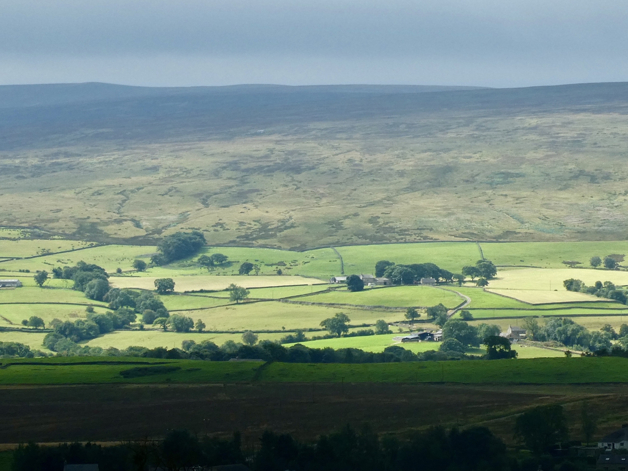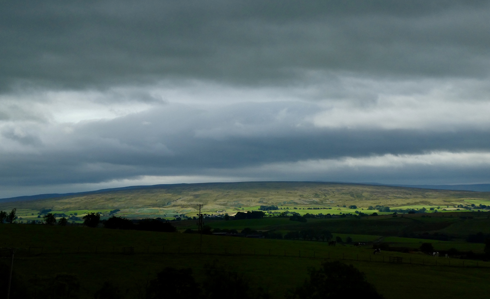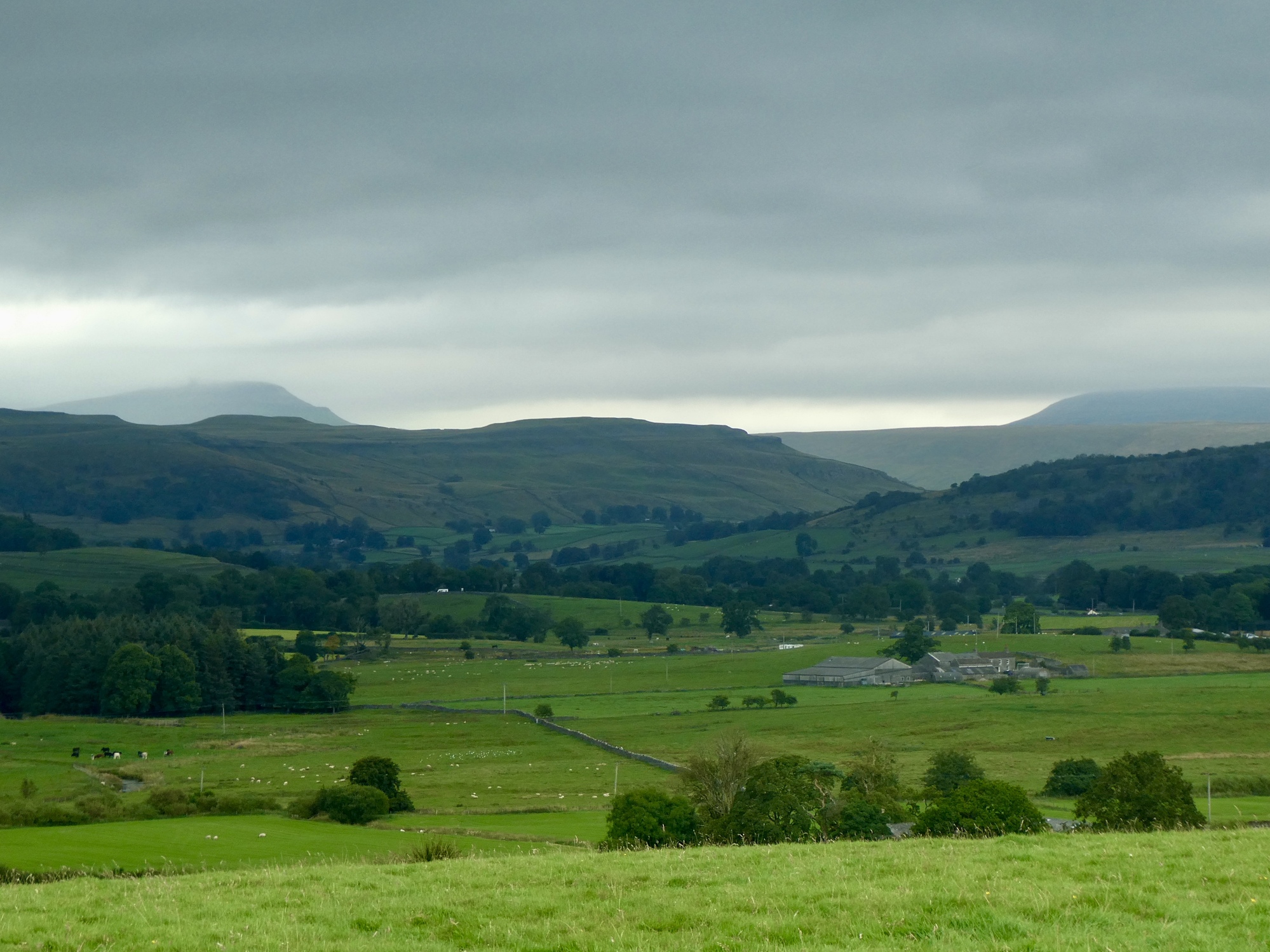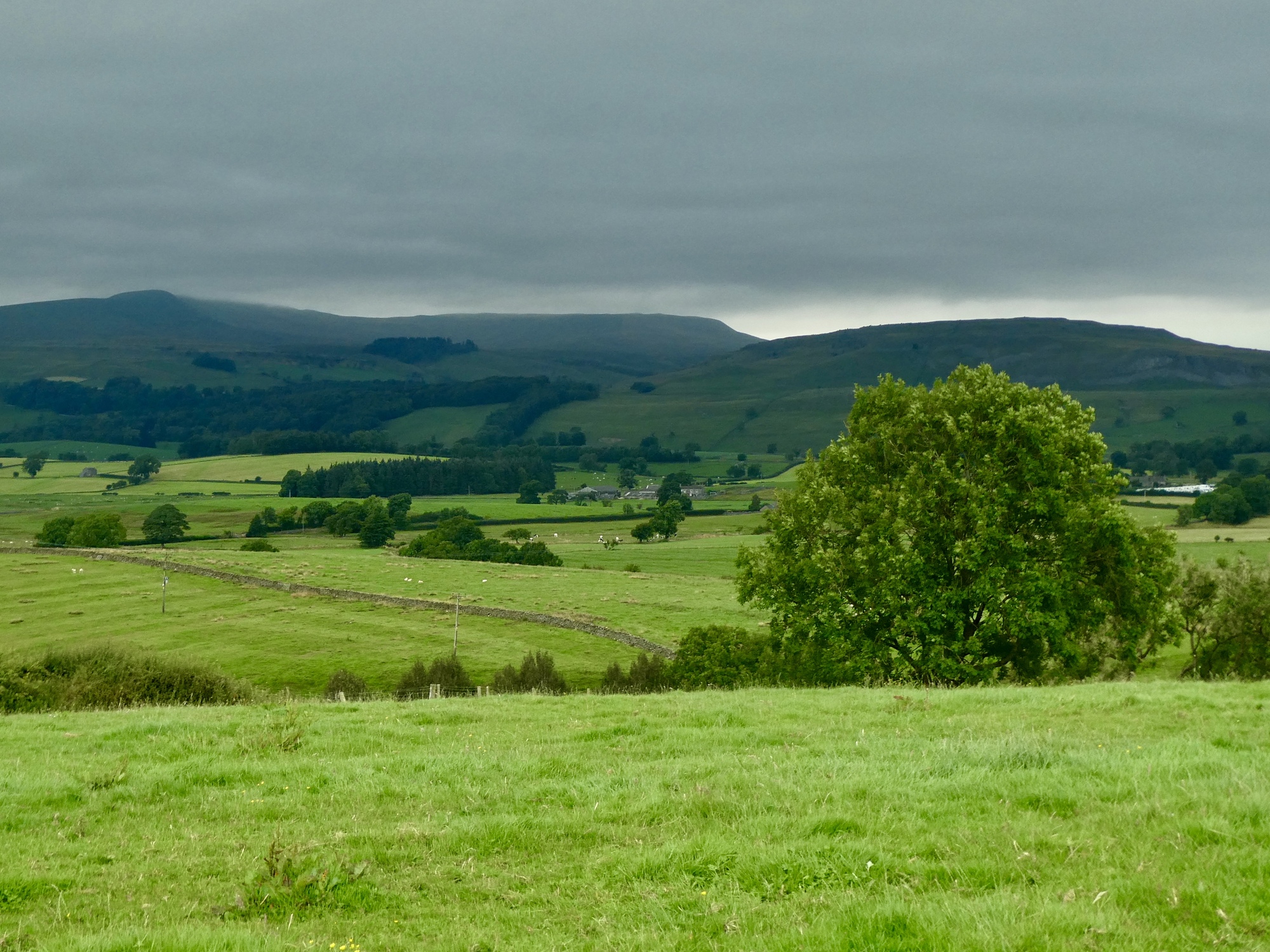 It’s solidly overcast as we begin climbing away from Ingleton, but there’s just enough of a break in the clouds to brighten the next ridge over.