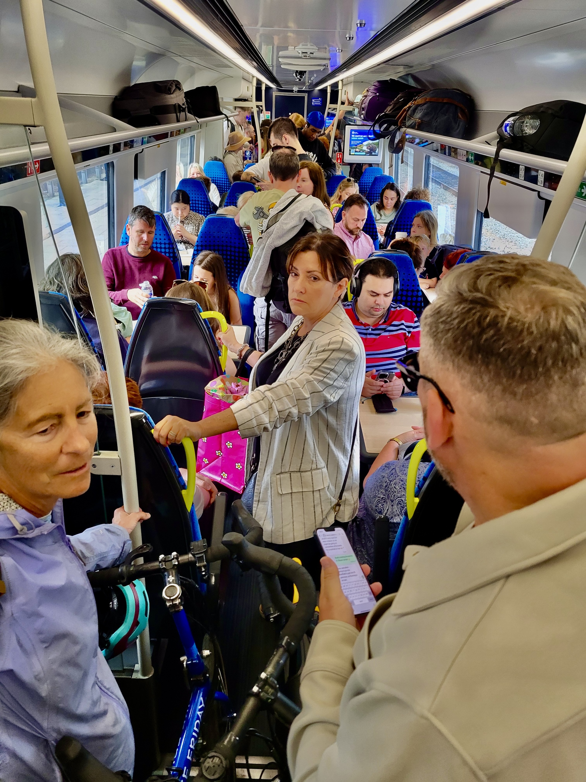 Further on another couple boards and Rachael strikes up a chat with them. They’re on their way to London for some sort of getaway and concerned about it because they’ve heard their train will be delayed.