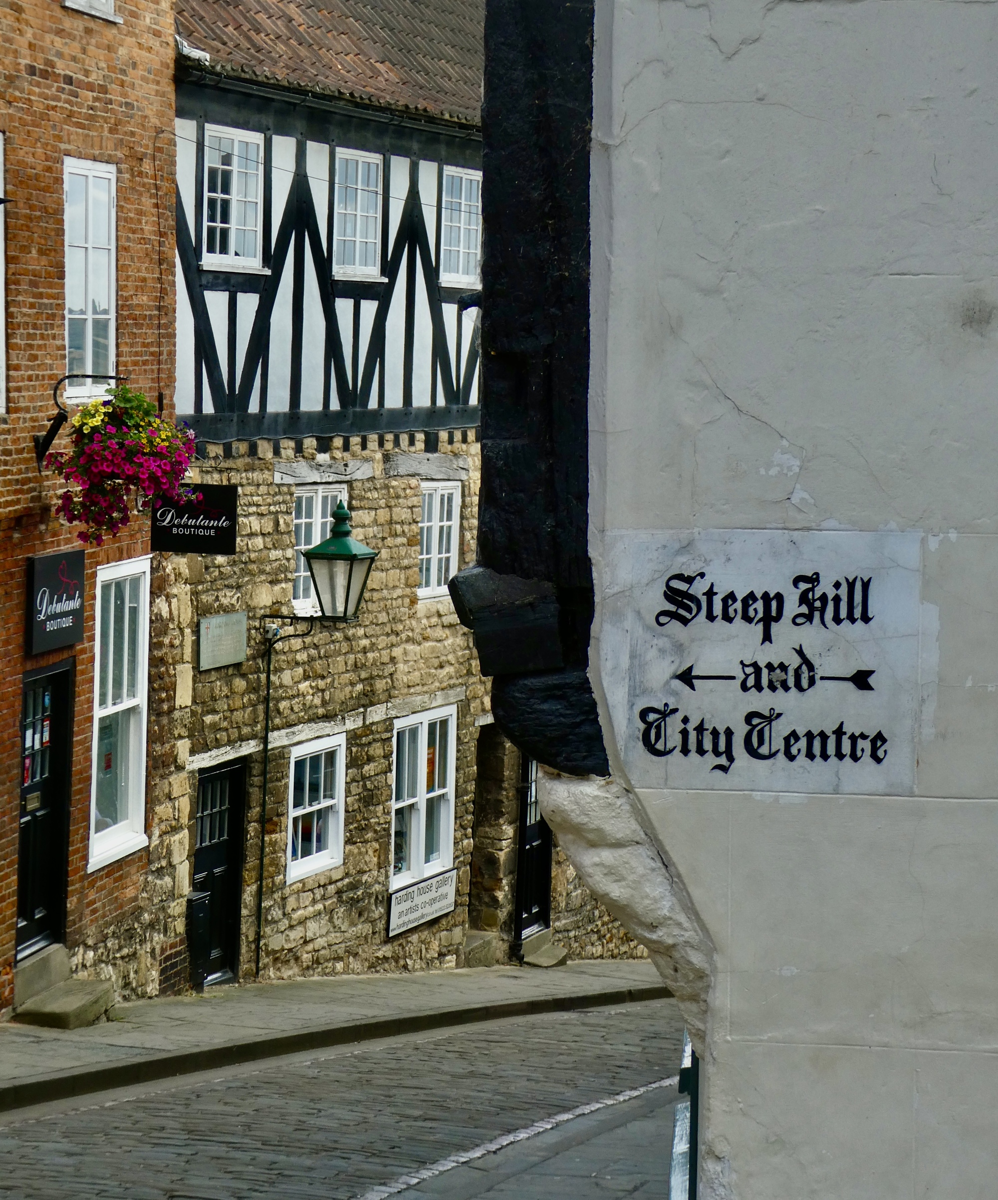 We’re fast eaters, so by two we’re ready to head up to our hotel. It’s attached to a cafe, so if the room’s not ready yet we’ll just hang out there until it is. It’s right up the street the restaurant is on, Market Street, only about five blocks away; but the entire distance gets pushed - first because Market street is dense with shoppers and tourists, and then because the now renamed street is surfaced with bricks and is much too steep to bike. It’s like we’re back in Yorkshire again.