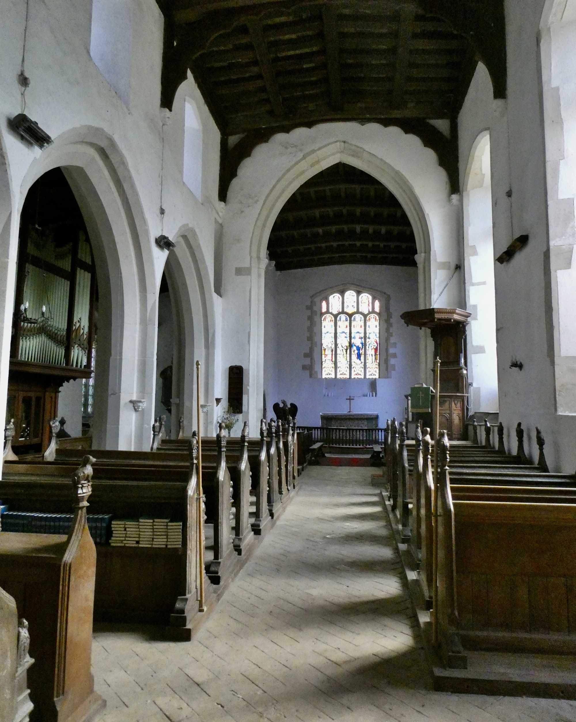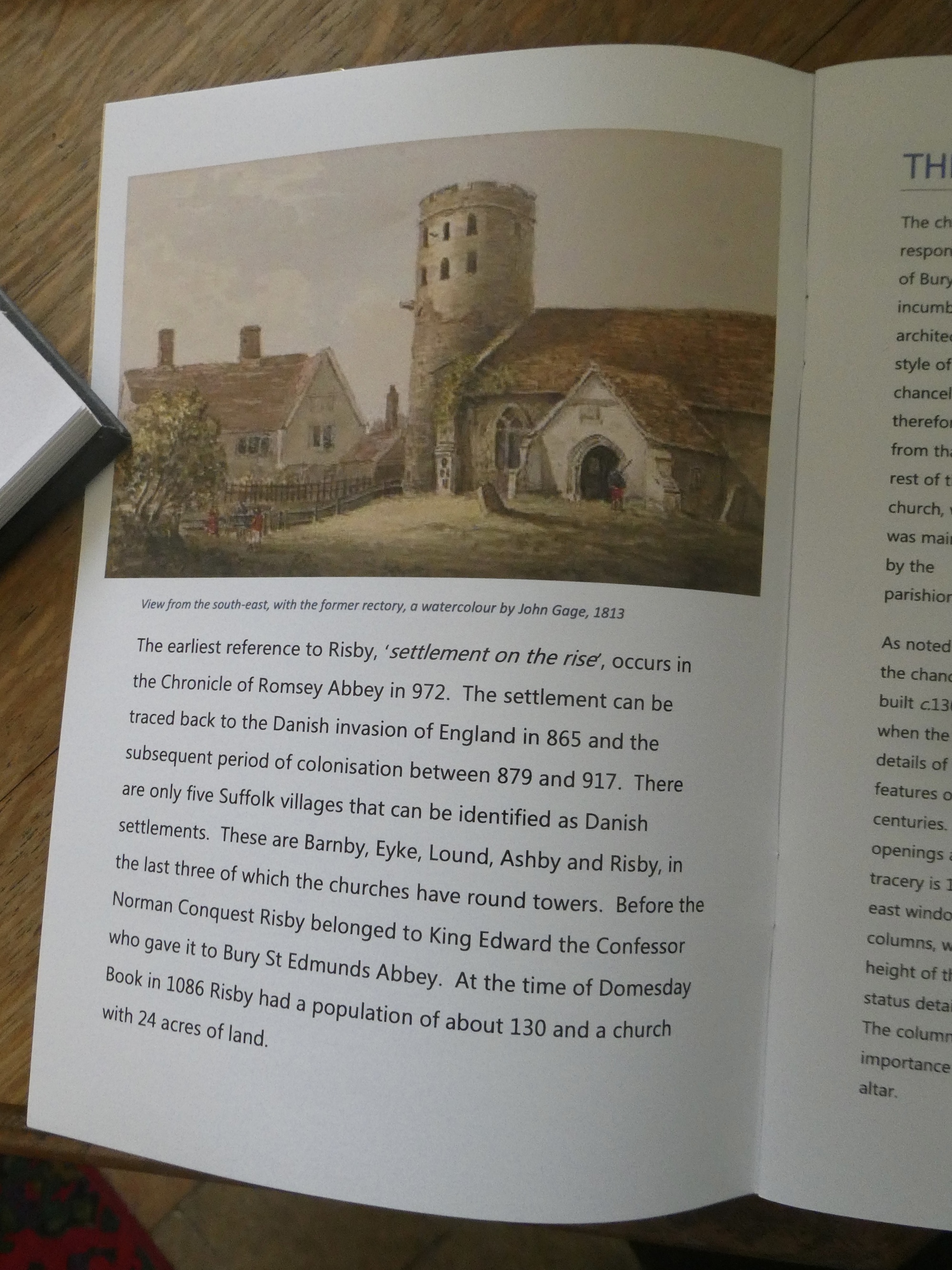 It doesn’t take me long to make my way back to Little Saxham and that round-towered church we passed with a sideward glance yesterday. It takes me awhile to get away from it though. It’s a small place but I’m probably there for twenty minutes or more admiring its unusual architecture and exploring the interior. I’m intrigued most at first by the tower, proudly described in the pamphlet for sale on a table inside: