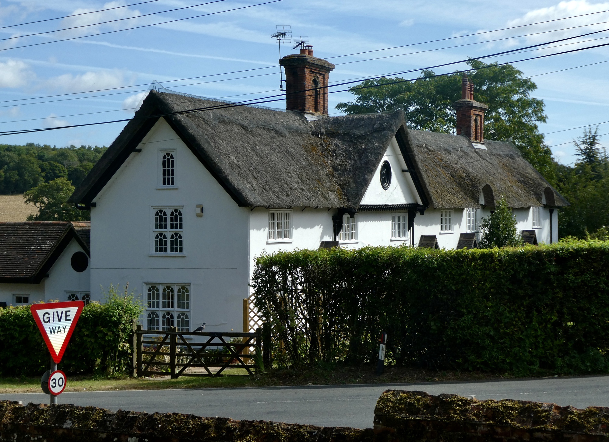 I’m at this second church for at least as long as the first one; and as I pedal off I check the time and realize that it’s not really going to work to go look for birds at Lackland Lakes if I’m going to get back in time for my haircut appointment. So that four mile detour gets lopped off the itinerary and I just bike the roundabout way back to Bury St. Edmunds. That will still leave me time to stop off for things along the way, like one more neat thatched roof.