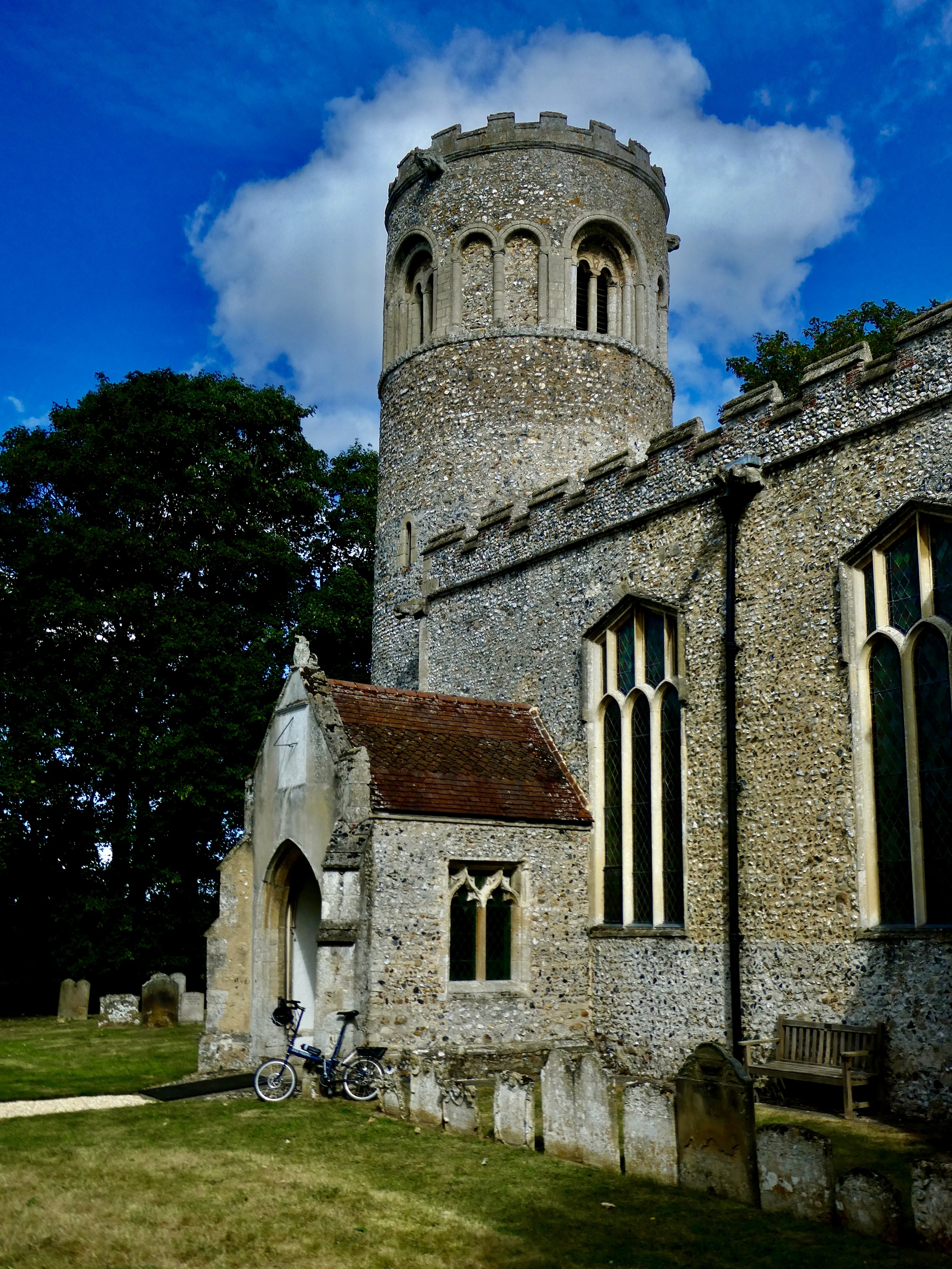 Now I’ve really blown my time budget though so I just bike home, permitting myself a few quick snap stops but bypassing three more tempting churches in just the next five miles at West Stow, Ampton and Great Levermere. The density of ancient churches here is really noteworthy. As I bike, I take note of what fine cycling country this seems to be, its gently rolling hills intermixing wood lots and open spaces making for a more interesting terrain than the flats around Ely.