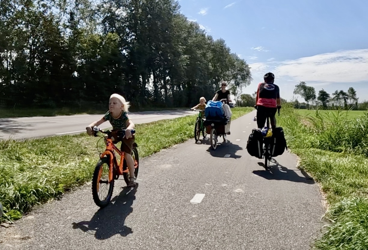We have a fairly long ride ahead of us on a day that’s due to heat up to 80 so we get a reasonably early start. Tiziana stands out on the sidewalk (barefoot!) while we slowly pack up and eventually bike down the street with the blades of Zierikzee’s windmill rising above the houses ahead.