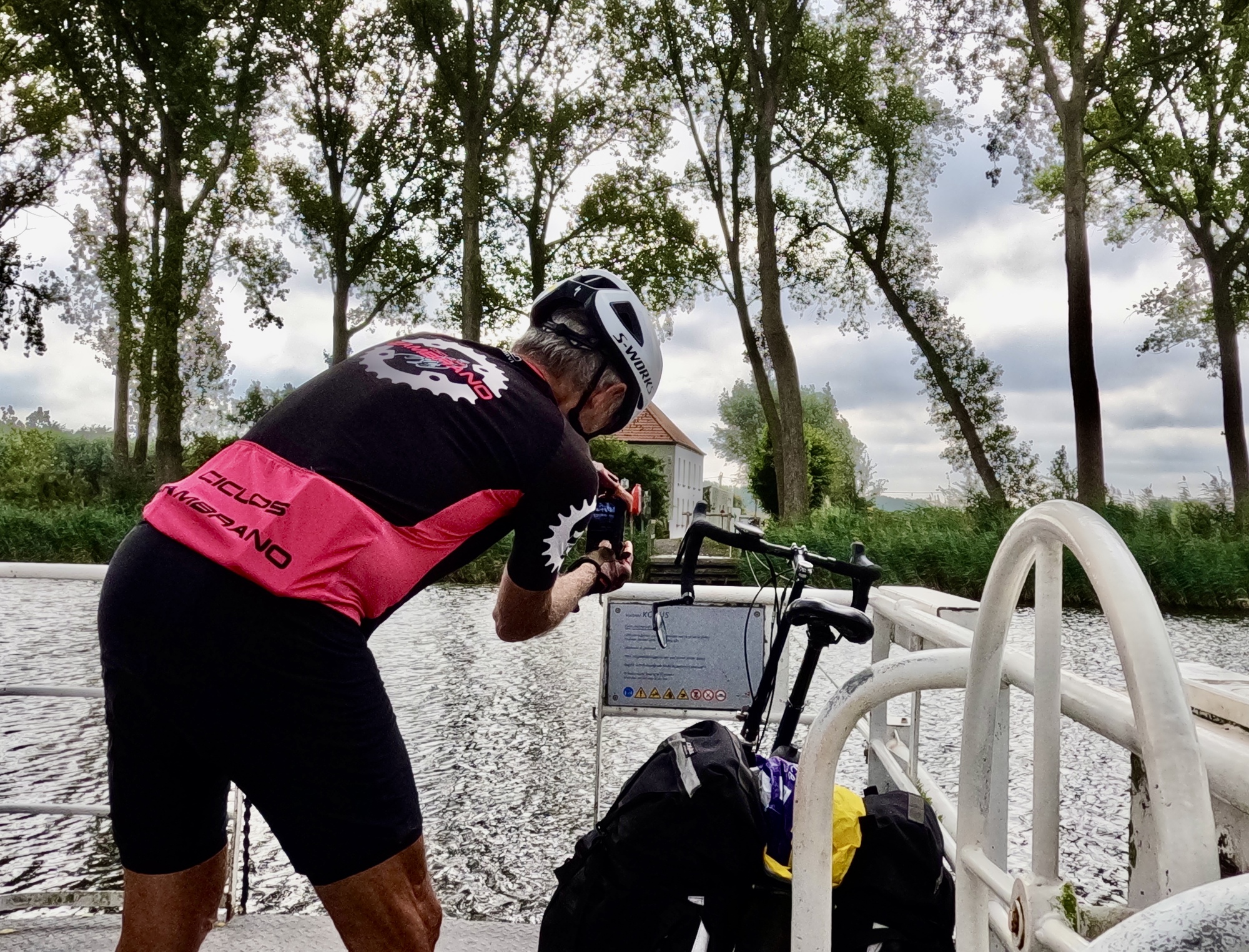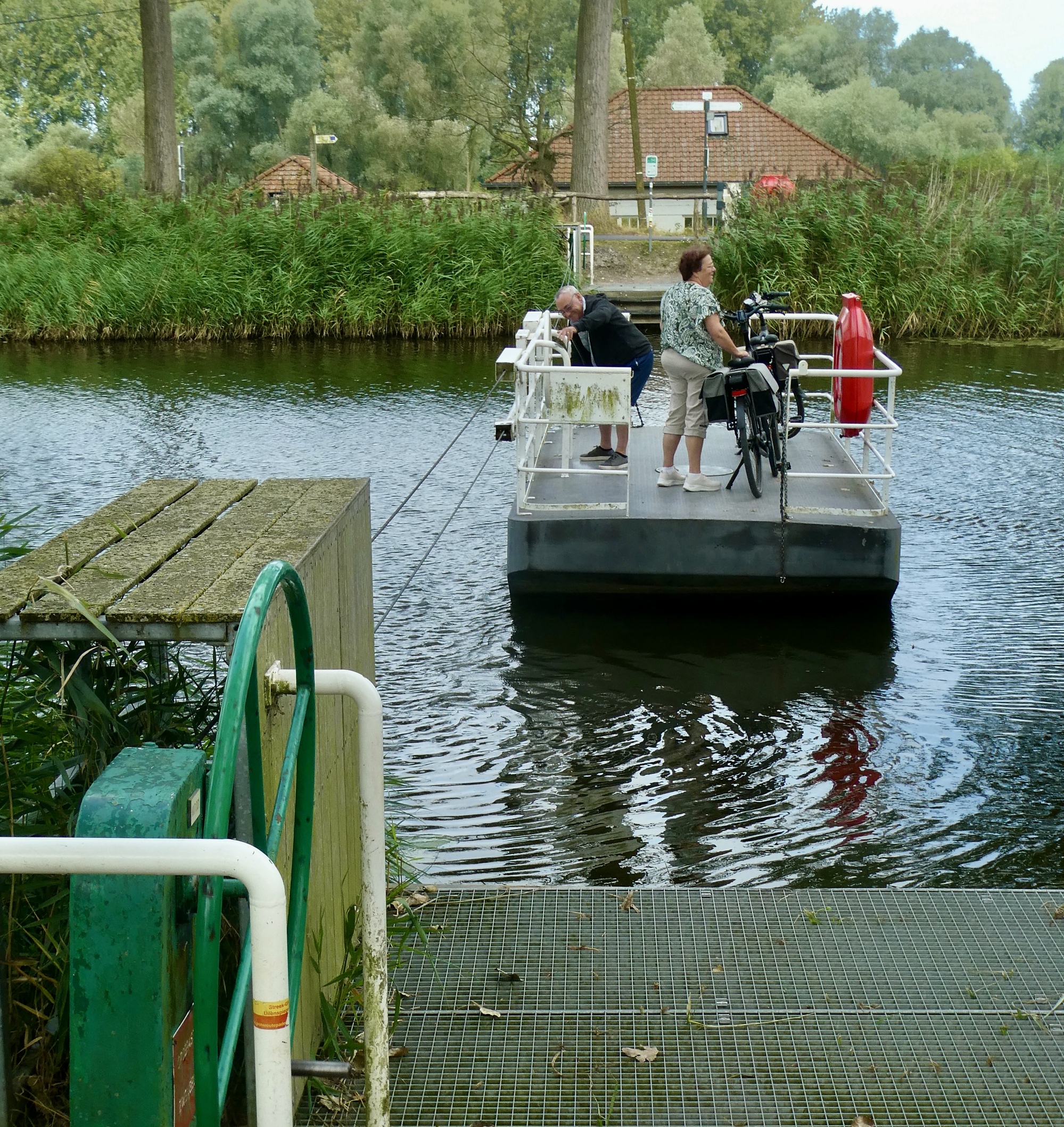 It’s been a fine ride up until now, but the real highlight of the day comes when we’re surprised to see we have a second ferry crossing - a very short one across the canal, on a hand-operated ferry. I’ve never seen one of these, and it’s a particular delight because I’ve been envious of the crossing the Grampies took on one of these about a week ago with their grandkids and son. I want to see one of those, I said at the time. And now here we are.