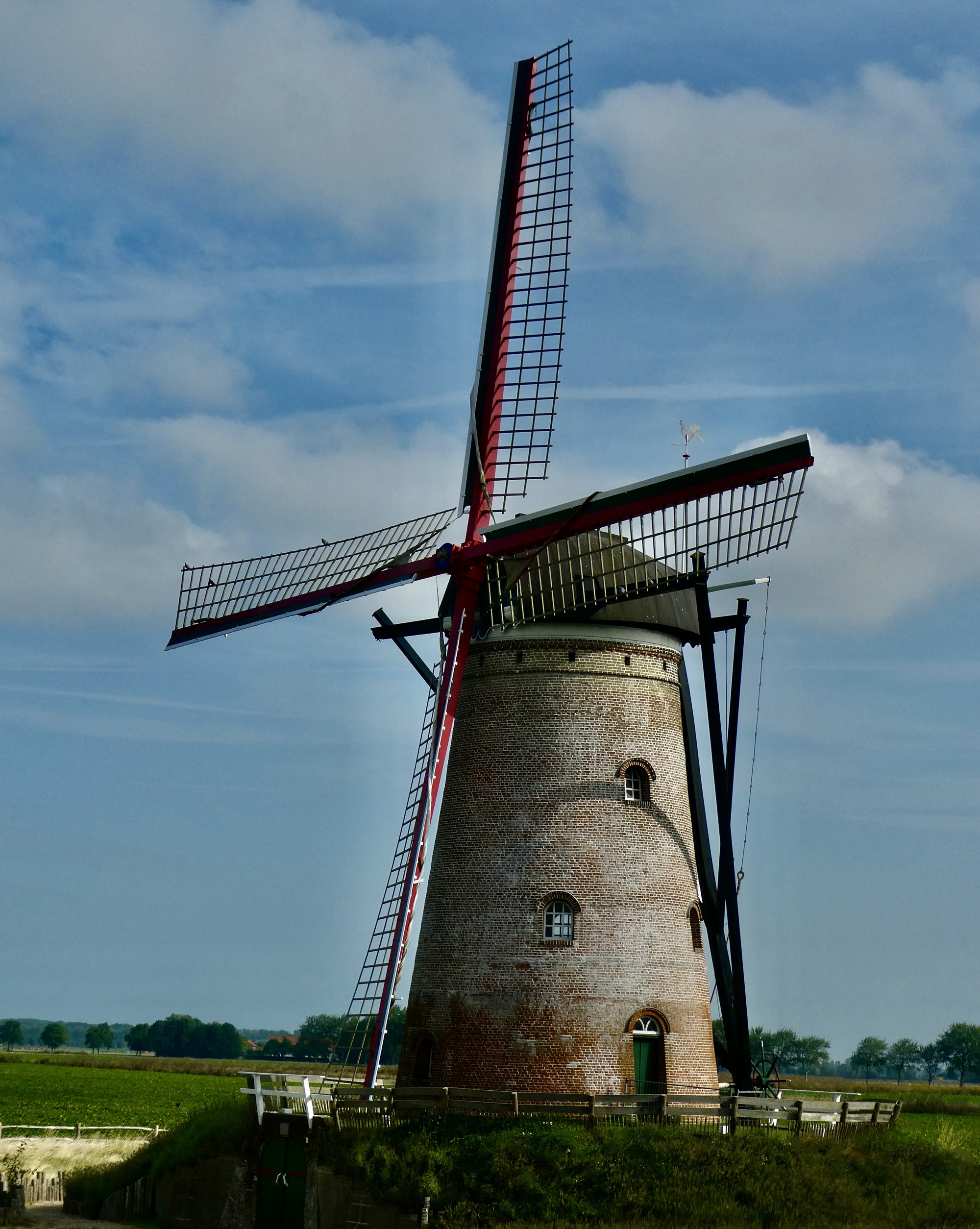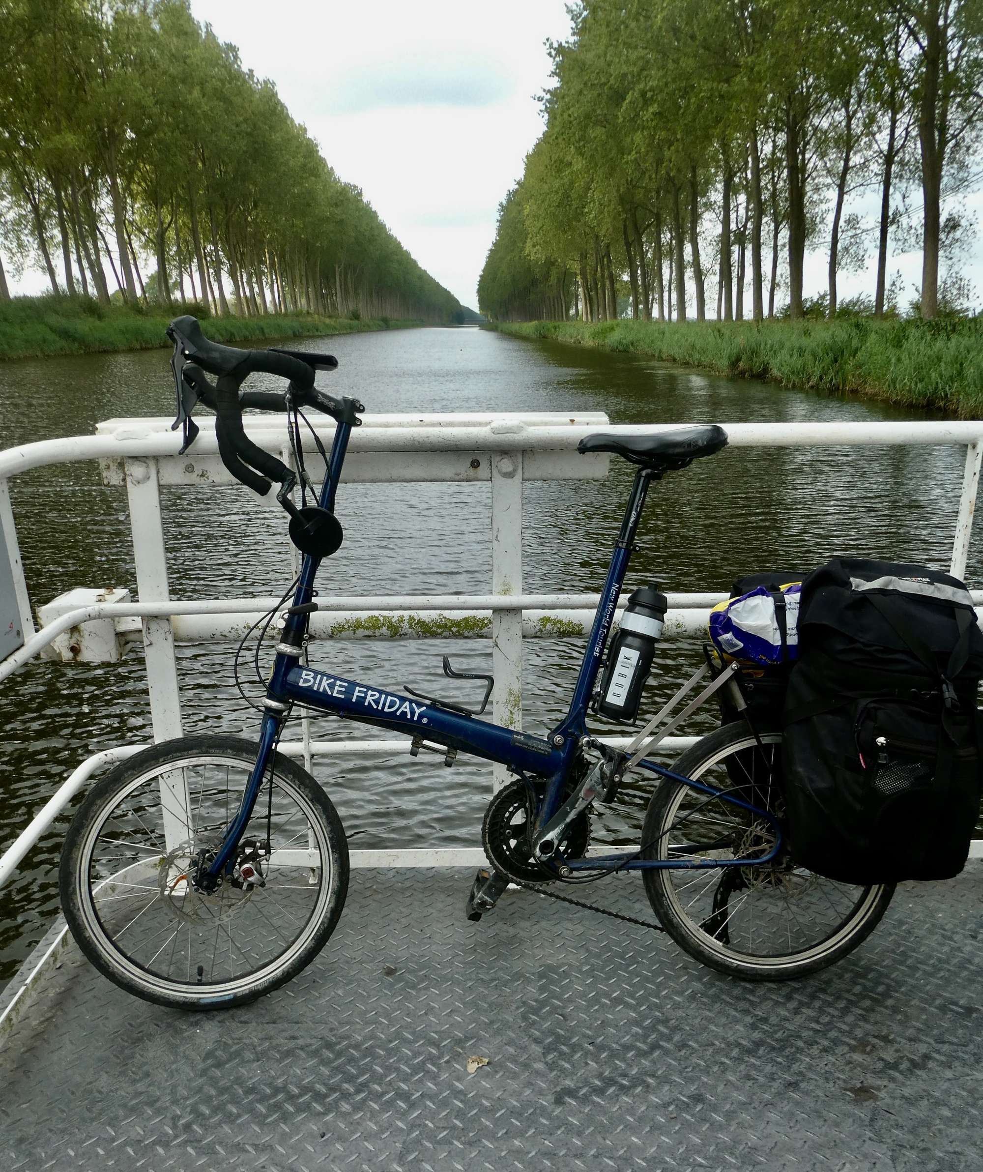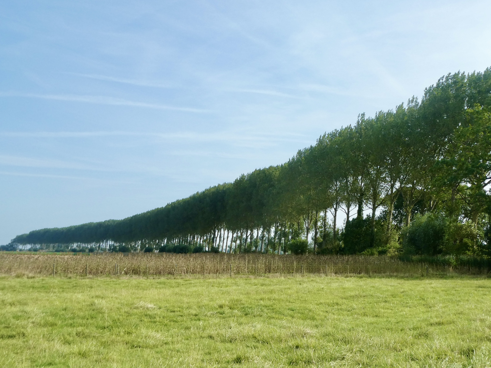 South of Sluis we follow the Damse Vaart, part of a canal system built to connect Bruges to the Westerschelde. As I understand it, the name comes from the former village of Damse that was flooded out in creating the canal. It’s a delightful cycling route, the long road lined by unbroken rows of trees on both sides.