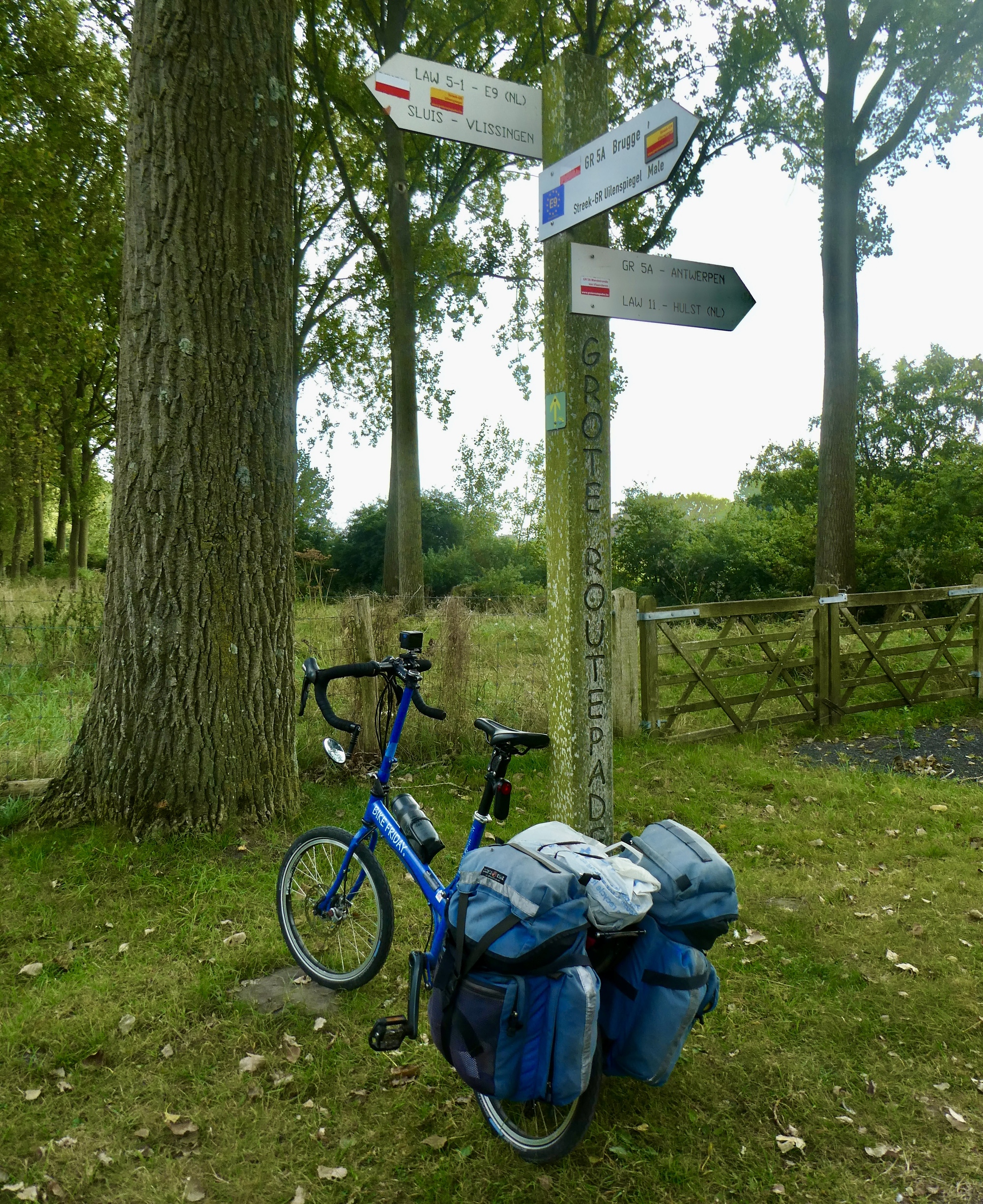 We’re crossing Dutch Flanders now, the northern portion of Flanders within the Dutch border.Turning south, we cycle bike paths and quiet roads through agricultural land that has a different feel from further to the north - we’re seeing trees again, something that Rachael notes appreciatively - it would be easier to slip into them for privacy than in the wide open expanse she hiked through a few days ago.