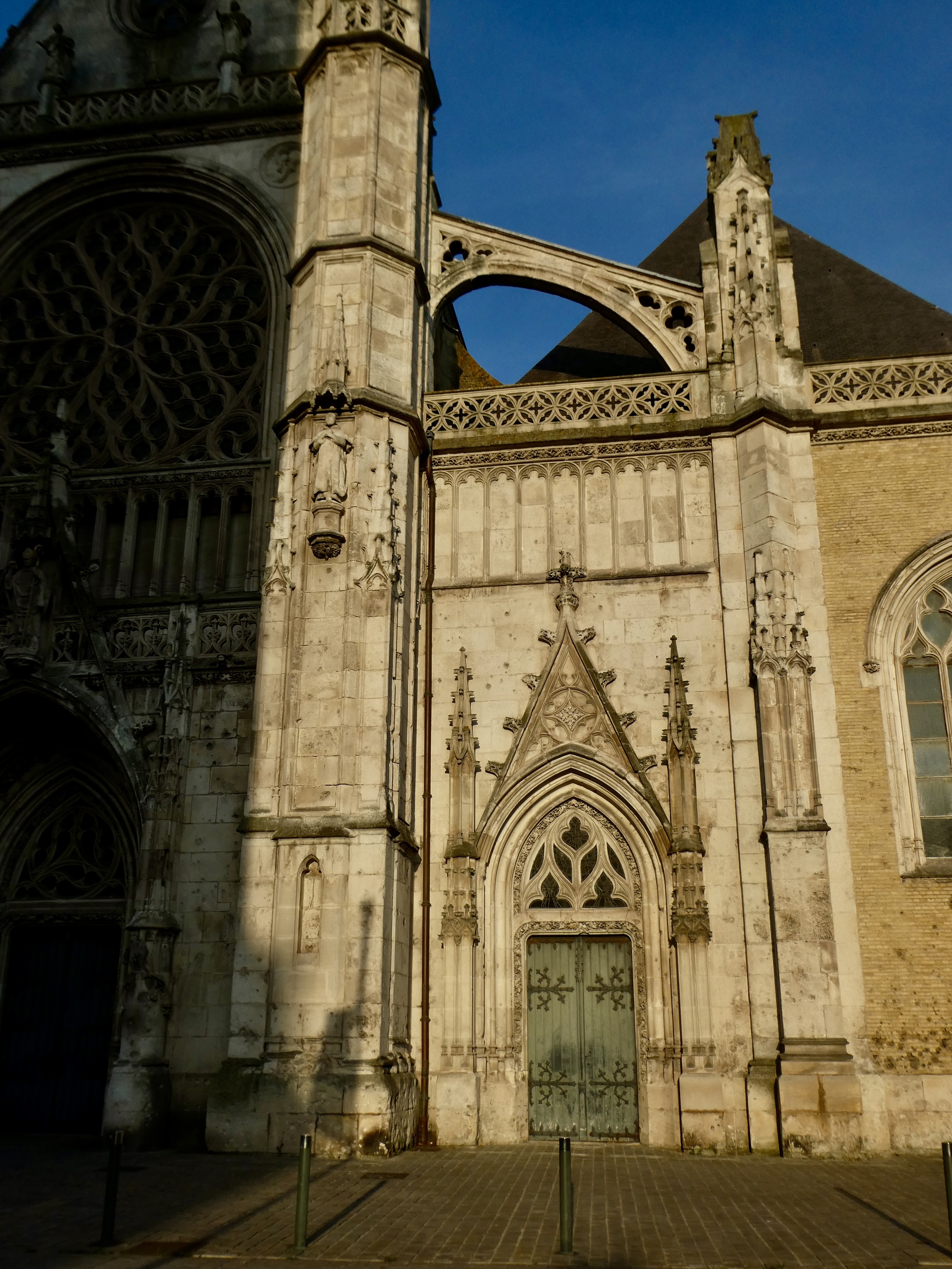 A few blocks later, on my way back to the hotel now, I stop for a look at the facade of the Saint-Eloi Church, part of it’s west facing facade nicely illuminated by the setting sun.