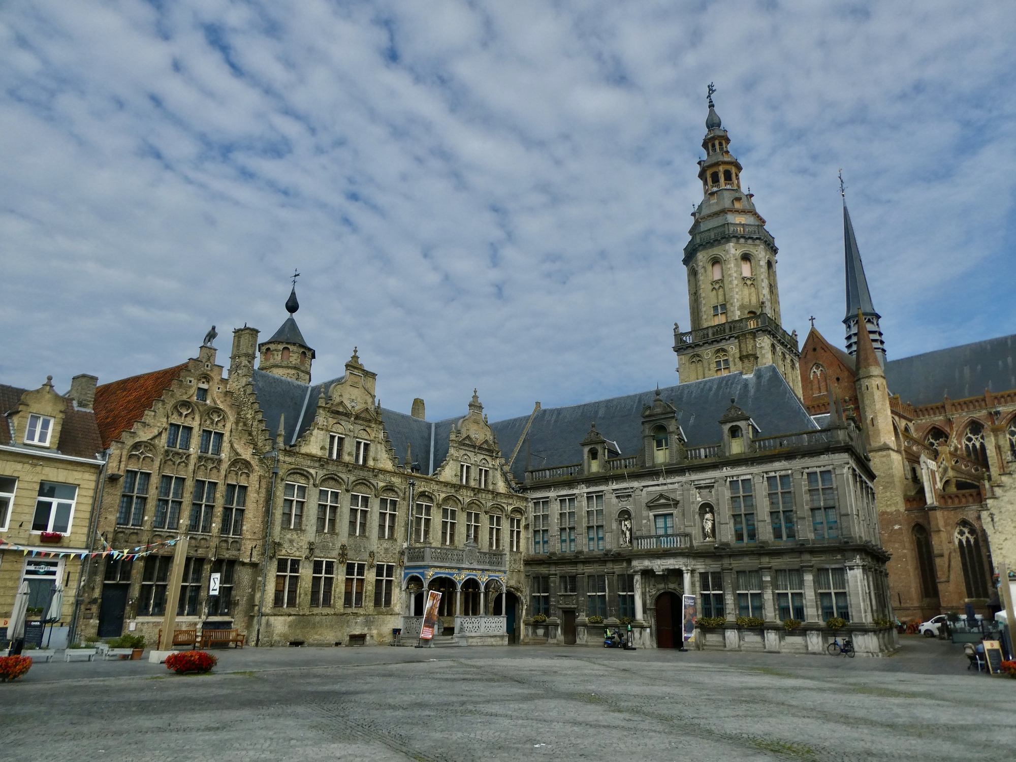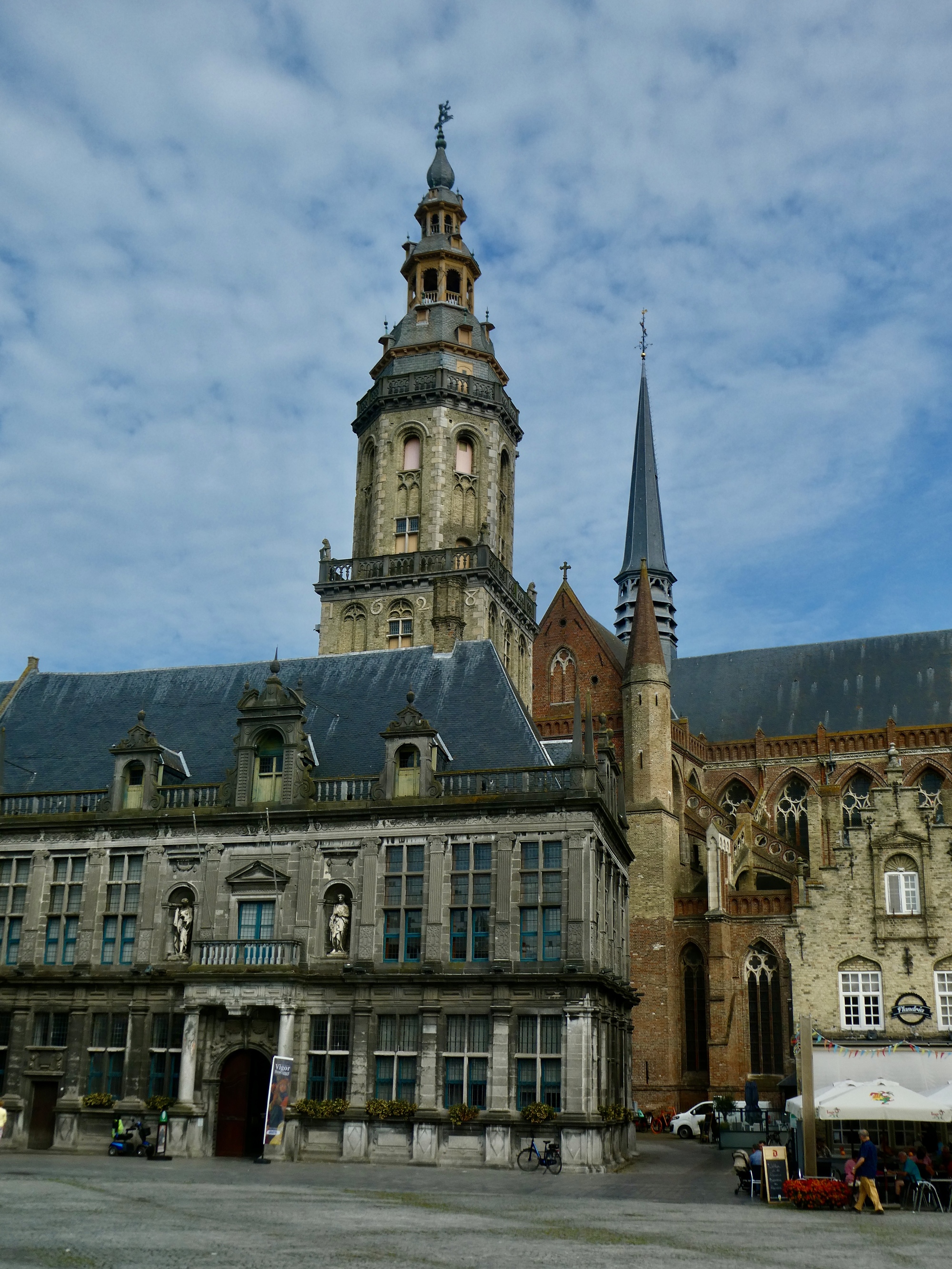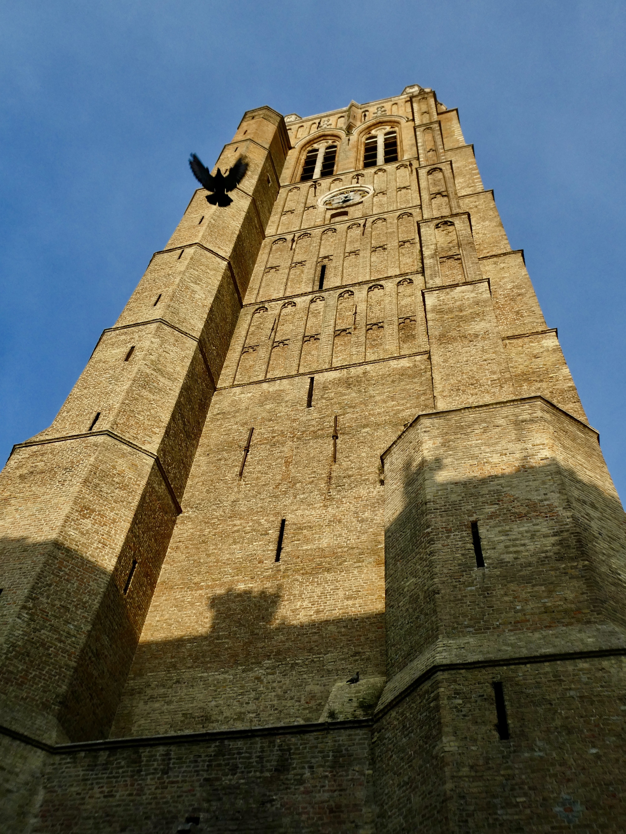 I get to the belfry sooner than I expected - my directions say I’m still several blocks away - but I’ve seen it coming nearly the entire way so it’s hard to miss. I take shots from several angles trying to get one that shows it reasonably well in this evening’s light. It’s quite expressive, nd is more than just the belfry - it’s the city hall.