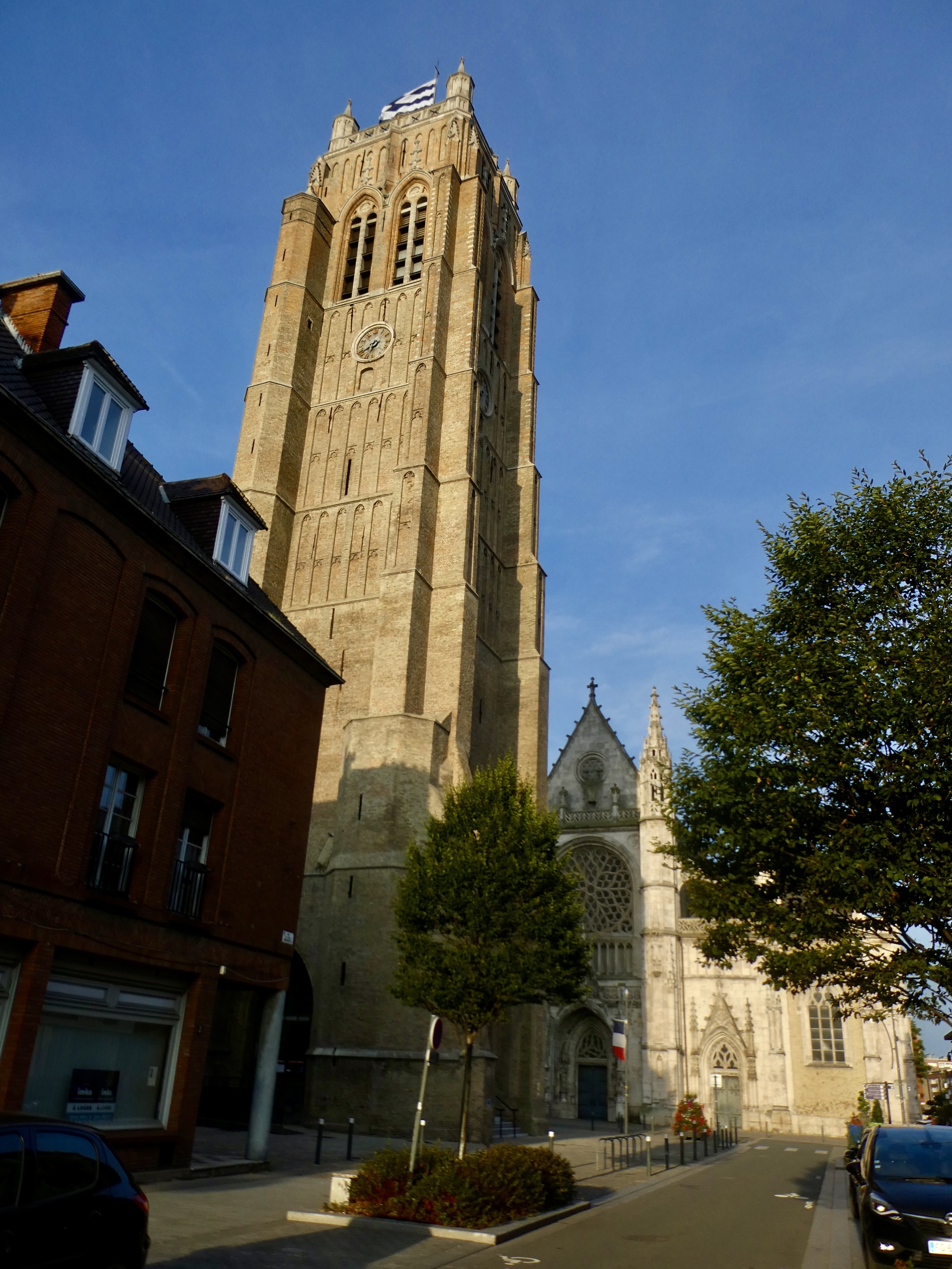 It’s not fully illuminated though, and the middle of it is in shadows. I turn around to see what’s blocking the sun and see what my phone was navigating me toward - another belfry. I hadn’t realize that Dunkirque has two UNESCO-cited belfries, just a few blocks apart from each other. This one is the Saint-Eloi belfry, associated with the church - built in 1440, it was originally a part of the church until a terrible fire separated them a century later. If it was earlier in the day and earlier in my time of life I could scramble up its staircase to what must be a killer view of the city.