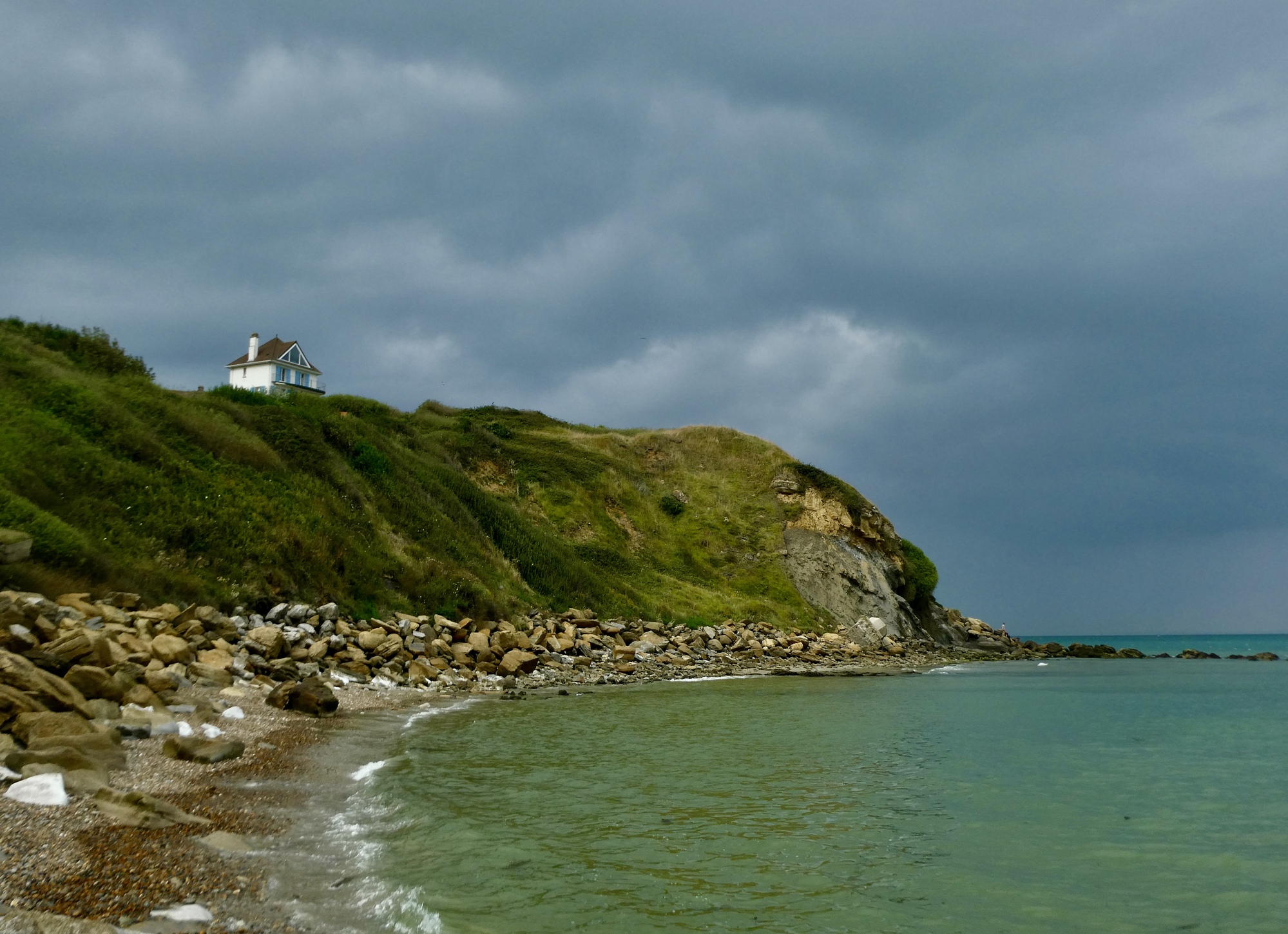 I feel badly for and concerned about her health of course, but other than expressing my sympathies and offering moral support there’s not that much I can do by hanging around so I head out for the ride I’d mapped out for the day, an out and back to Cap Gris-Nez (Grey Nose Cape), which together with Blanc-Nez, the next cape to the north, have been classified one of the Grand Sites of France. I’d say it’s not quite up there with such other classified sites as Mont Ventoux or Carcassonne or Rocamadour or the Gorges du Verdon, but it is quite scenic and makes for a nice, leisurely morning ride.