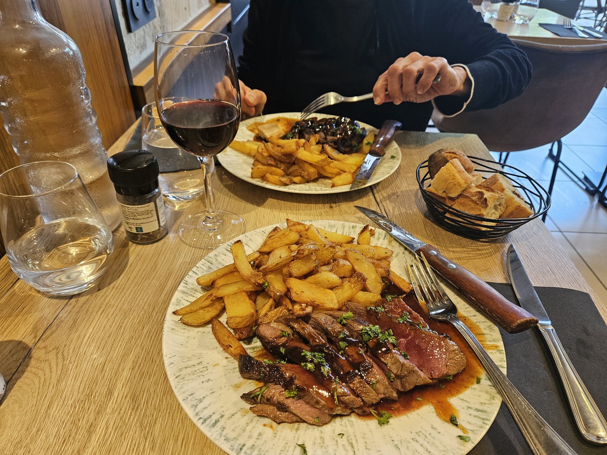 We’re happy to report that we’re both showing signs of improvement, but there’s not much beyond that to share because we’re both taking it easy. The highlight of the day is again our outing for lunch which we head over to Plumereau Square for, showing up at noon in front of our two favorites because a reservation in advance doesn’t seem to be an option today so we wanted to show up early. We compare the two options and a couple of others - this block on Rue de Grand Marche just east of the square is restaurant row - and happily settle in at our favorite, Restaurant Le Lys.