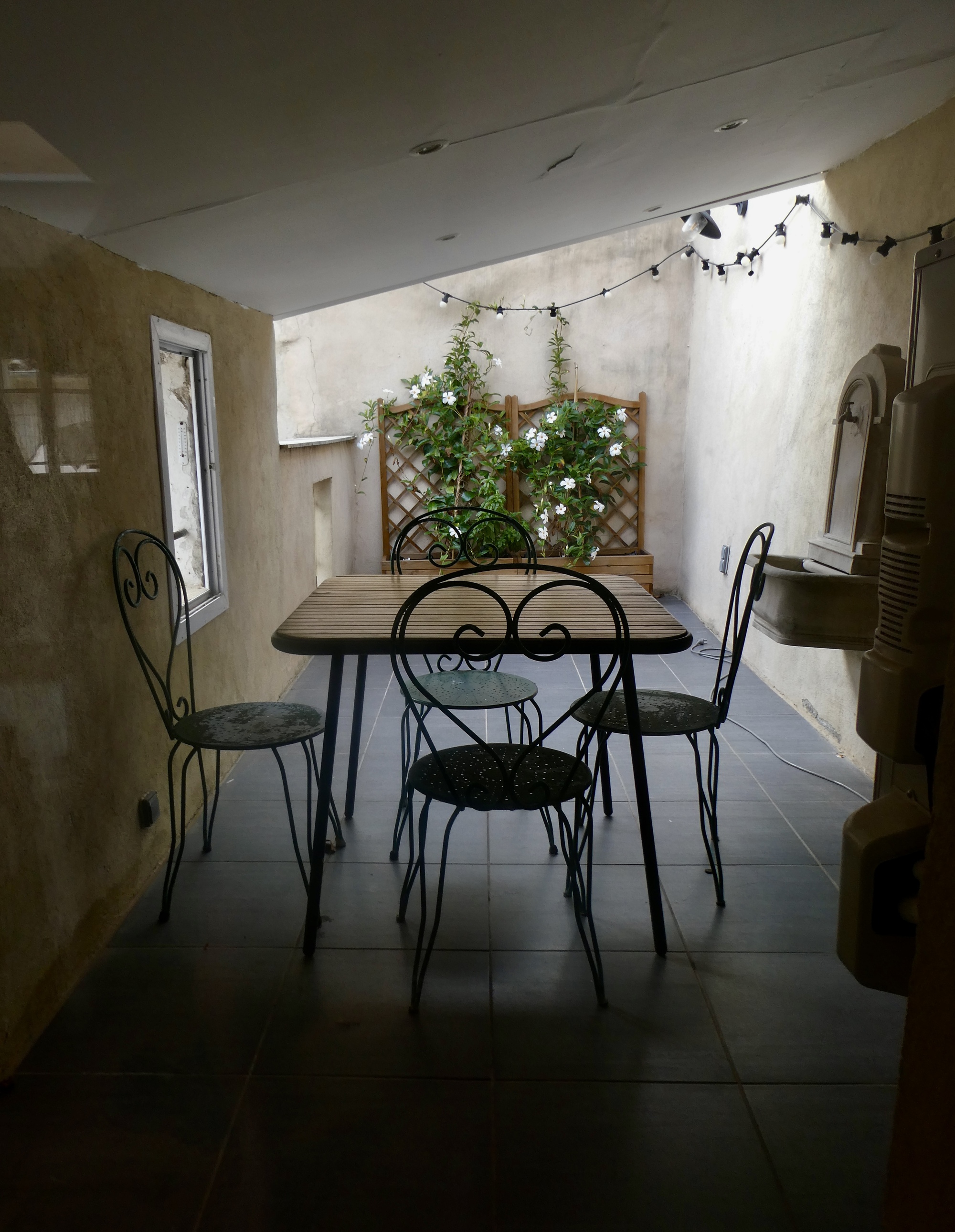 Rachael looks up the phone number, but it just goes to the mailbox; and we try sending another message through Booking. Then she has the idea to send a text, which works. A minute later Christian phones, says that his assistant will arrive momentarily, and soon an Arab woman wearing a shawl walks briskly up the street, smiles at us, and lets us in.
