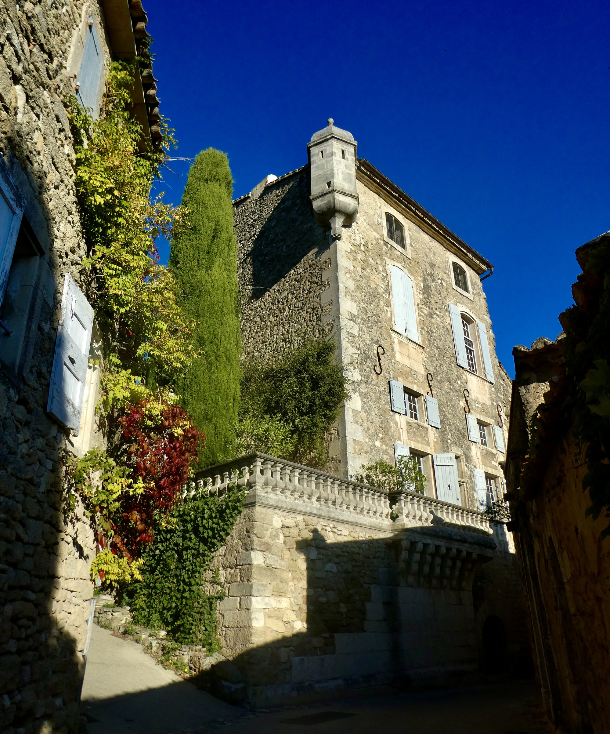 Seeing it from below though and climbing up into it we get a splendid look at the town and can see how strikingly beautiful it really is. Having gotten really good looks at all three villages now, I’m convinced that Lacoste is really the best of the lot. If you ever come this way yourselves I’d consider approaching it from below as we did today.