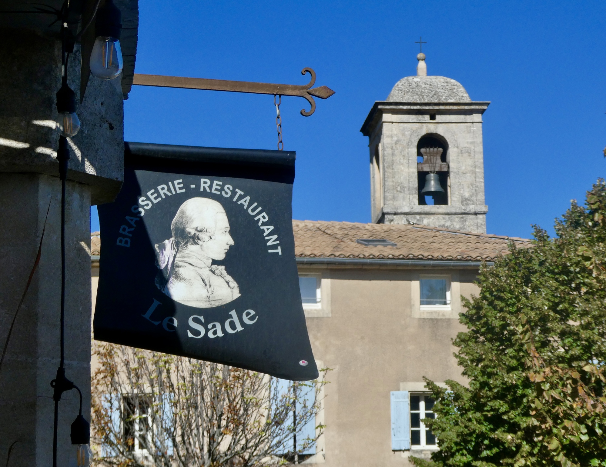 That plan gains consensus, so we turn to food considerations. We can’t check into our B&B until four so we decide we’ll have lunch in Lacoste, explore the village while we digest, and then coast five miles down to Ménerbes.
