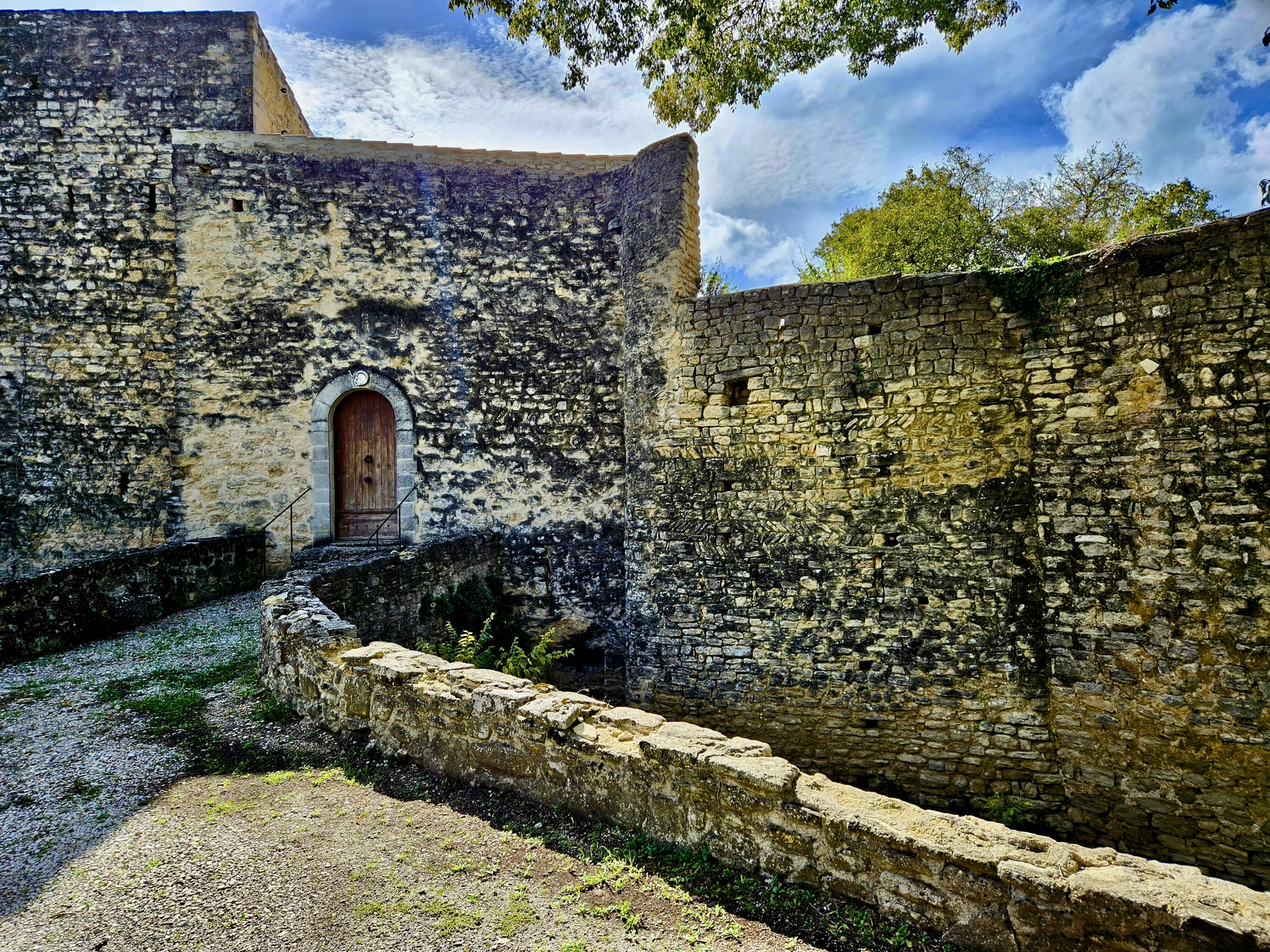 My ride begins by retracing my route to Venasque from two days ago, passing through Saint-Didier again and then pointing me toward a poor view of Venasque through the trees high up ahead before I turn north this time instead. I mostly just ride through this stretch this time but stop for a few photos anyway because today is a different day.