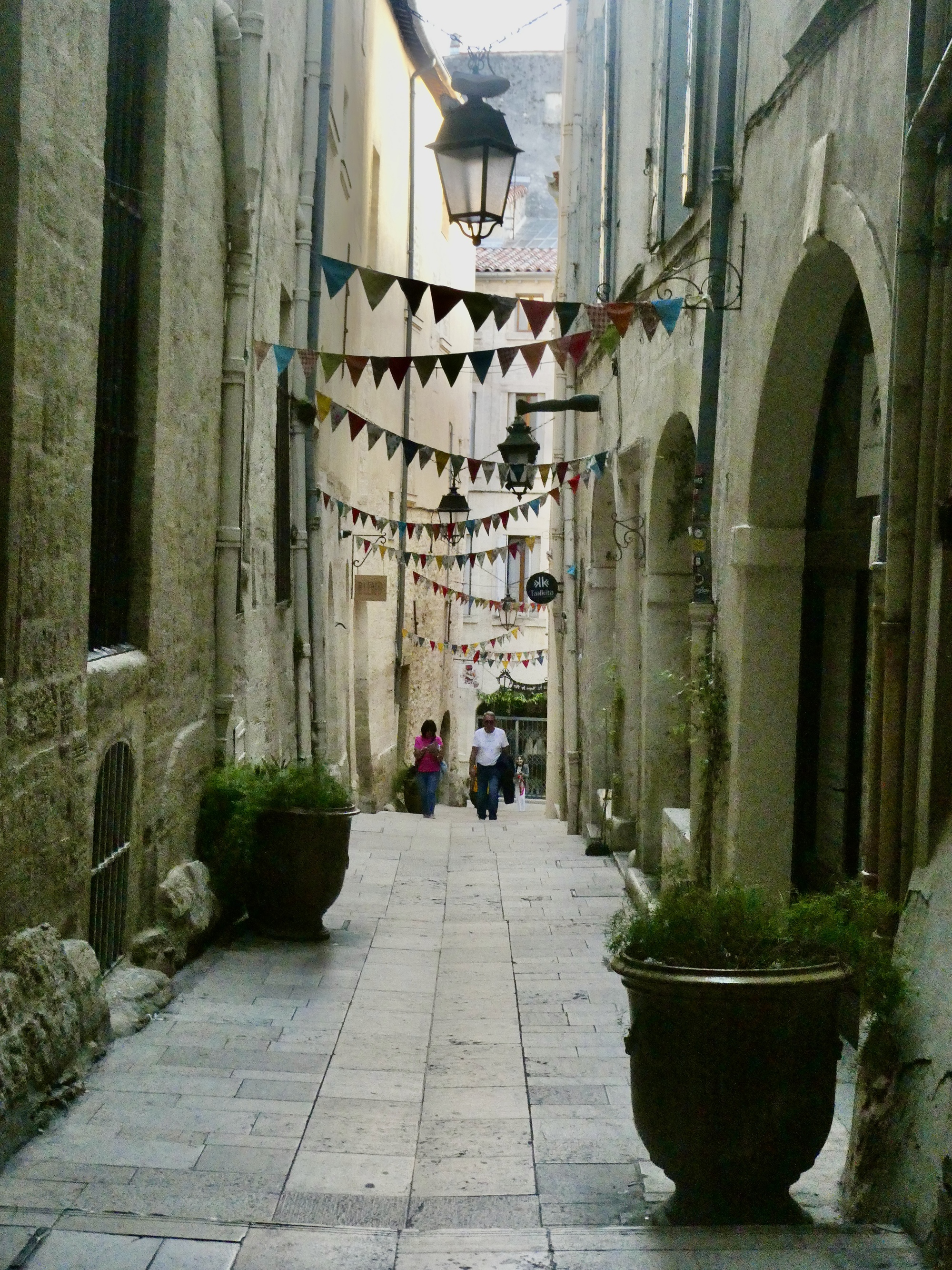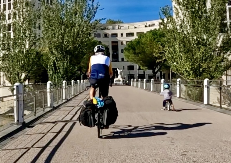 Afterwards we bike the six blocks to the Best Western we’re booked at right across the street from the train station, but it takes us awhile getting there. First, we’re stopped by a guy who hollers out “Bike Friday” as we roll past, so of course we stop for a chat. Bob and Venus are just our kind of couple, newly arrived in Montpellier after coming here from their former home in Las Vegas by way of a two year stopover in Mexico. We find a lot to talk about and we could have stood on the sidewalk a long time if I didn’t realize I needed to go to the bathroom and cut us off so we could get to our hotel.
