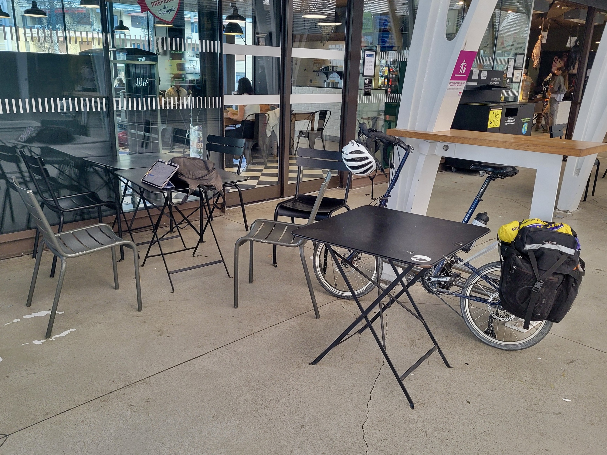 I call Rachael to tell her the good news, and not long after she calls back to let me know she’s arrived in Perpignan. Getting off was easy - she’s been standing holding her bike the whole way, and it’s an easy roll-off when she arrives. We discuss lunch because it looks like I’ll arrive in time, and she’s found a restaurant close to the station that takes reservations as late as 2:30. It should be no problem.