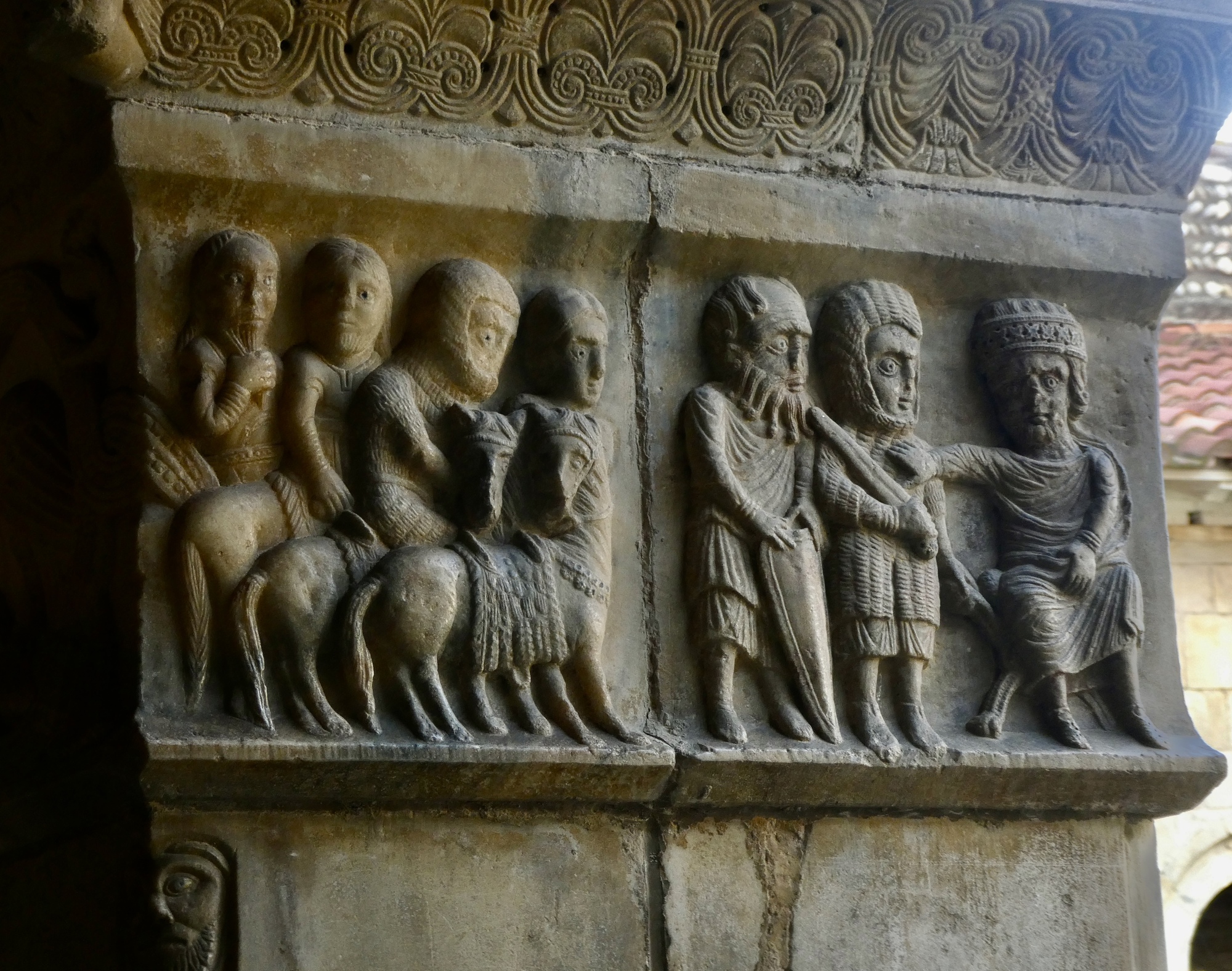 I’m disappointed when I return to the church in Saint-Génis-des-Fontaines and find its portal locked. As long as I’m here though I can at least take a photo of the carvings around the lintel. I don’t know which one piqued Jacquie’s interest, so to be on the safe side I take shots of them all: