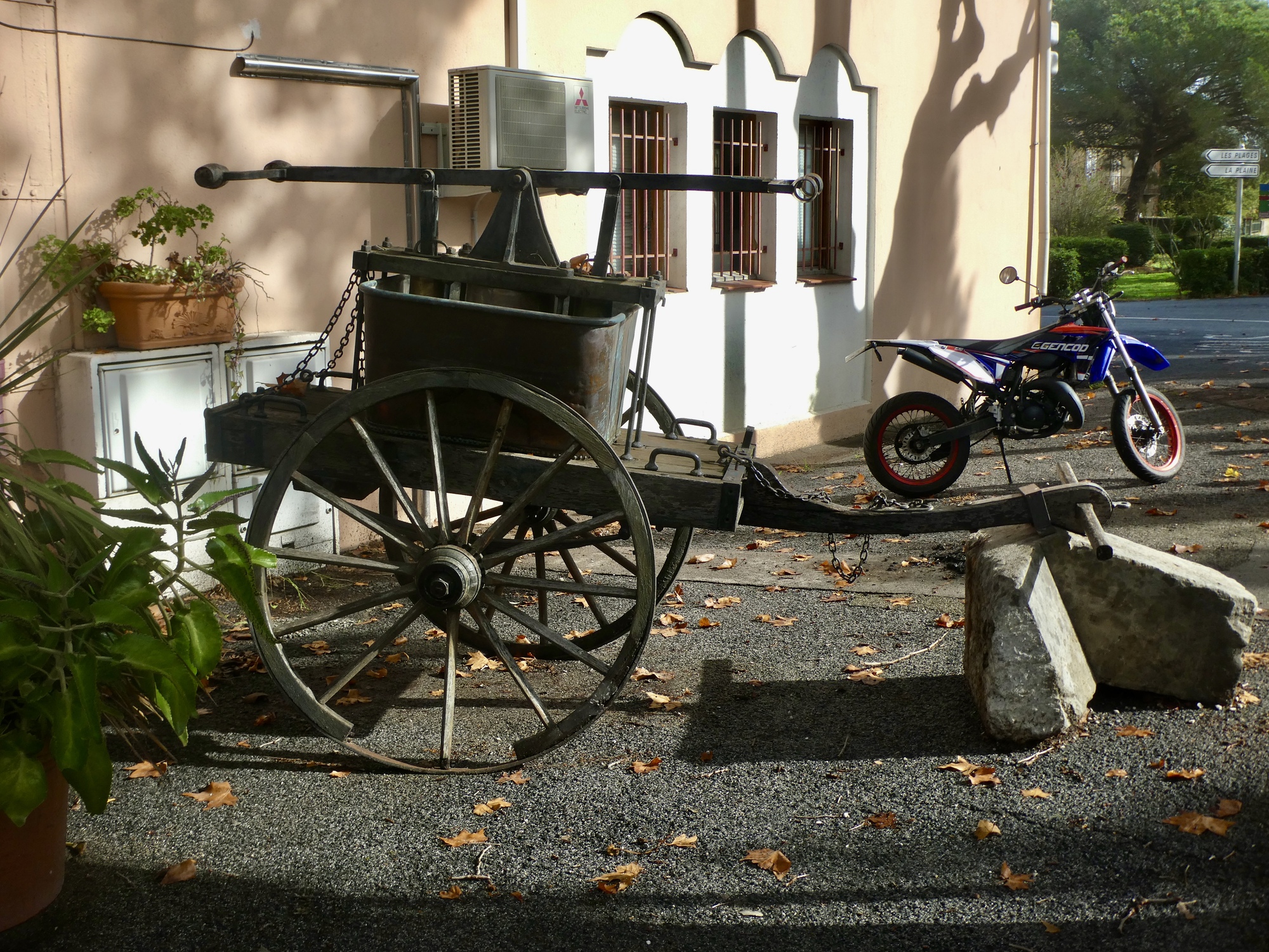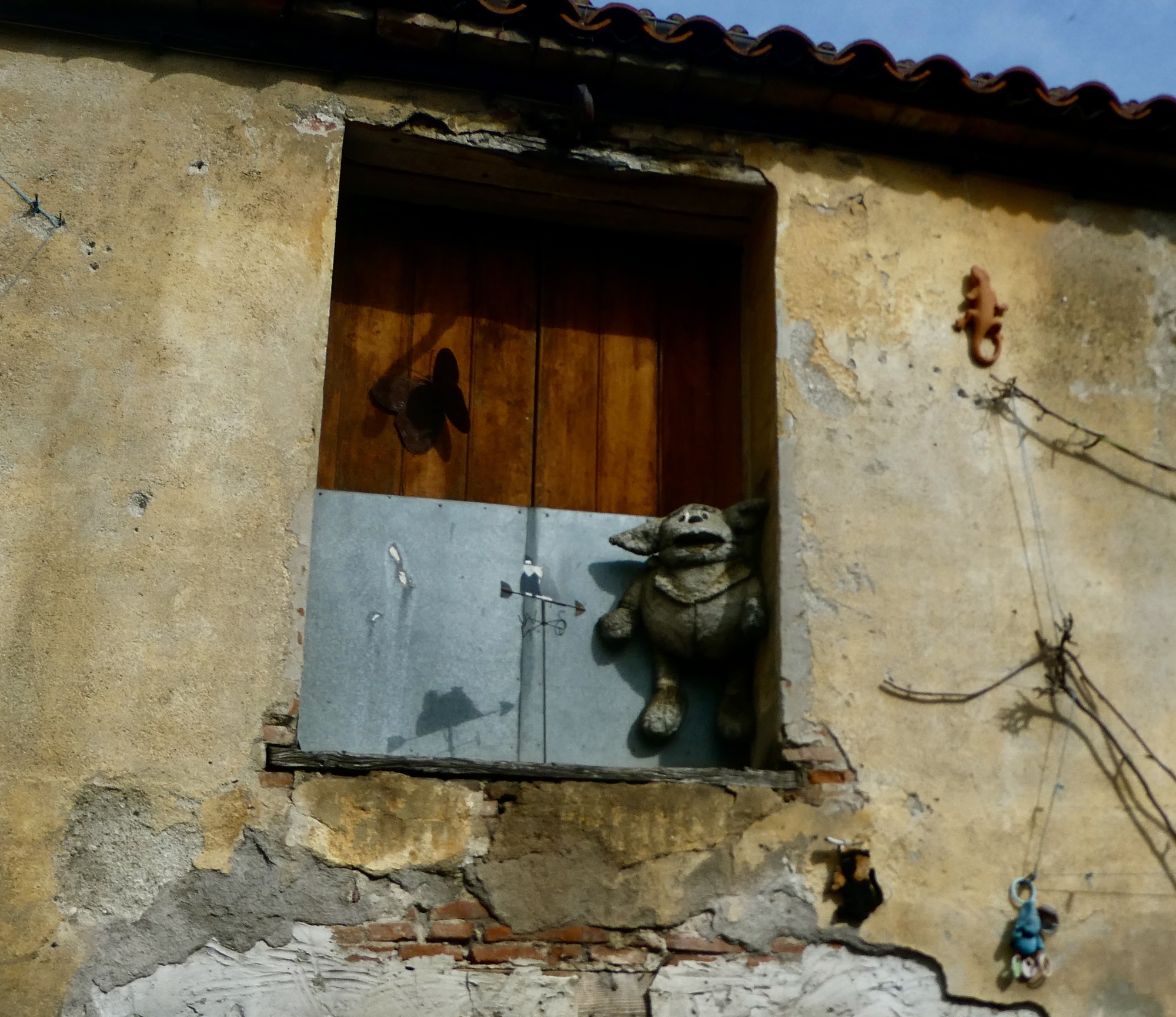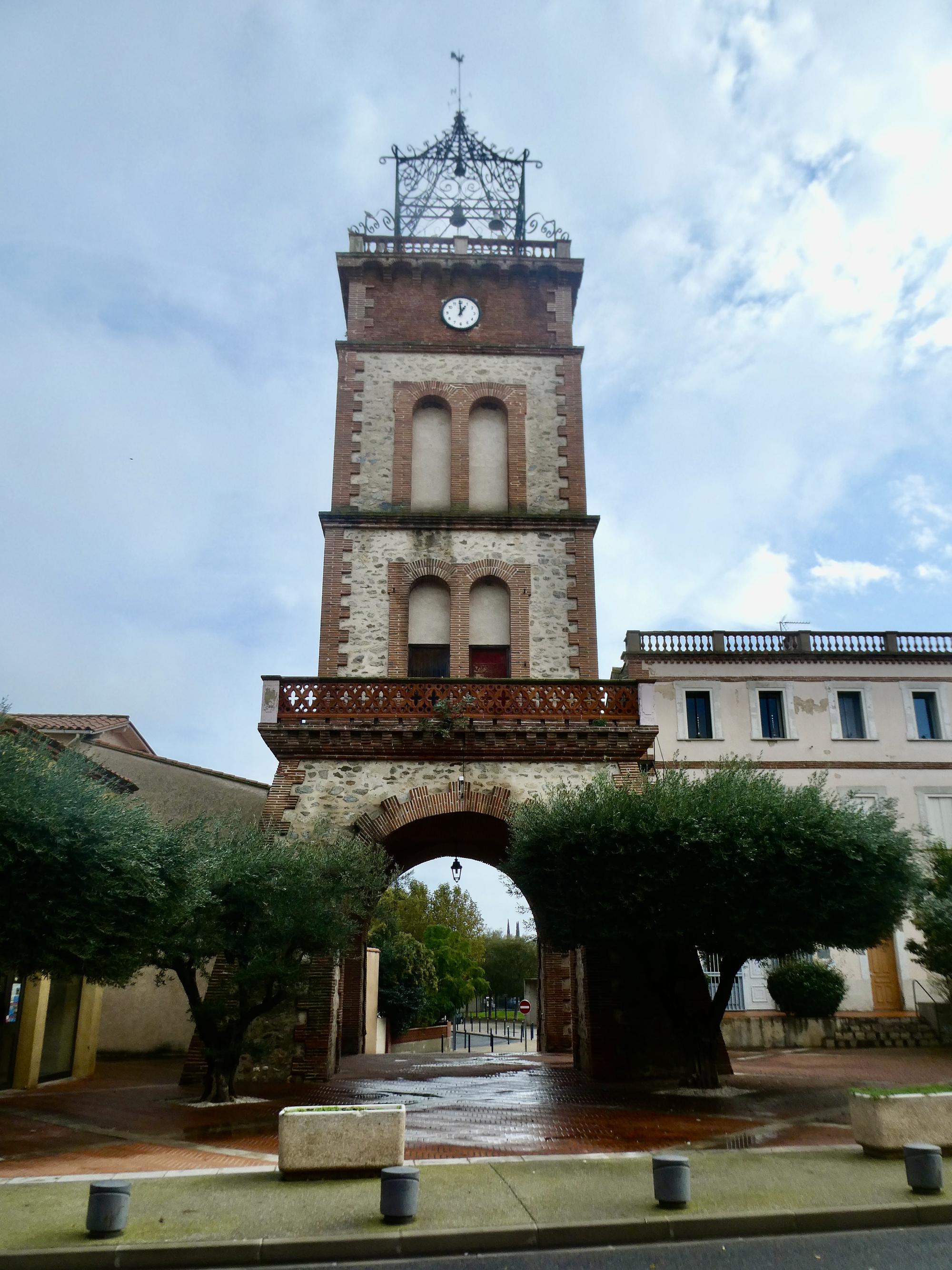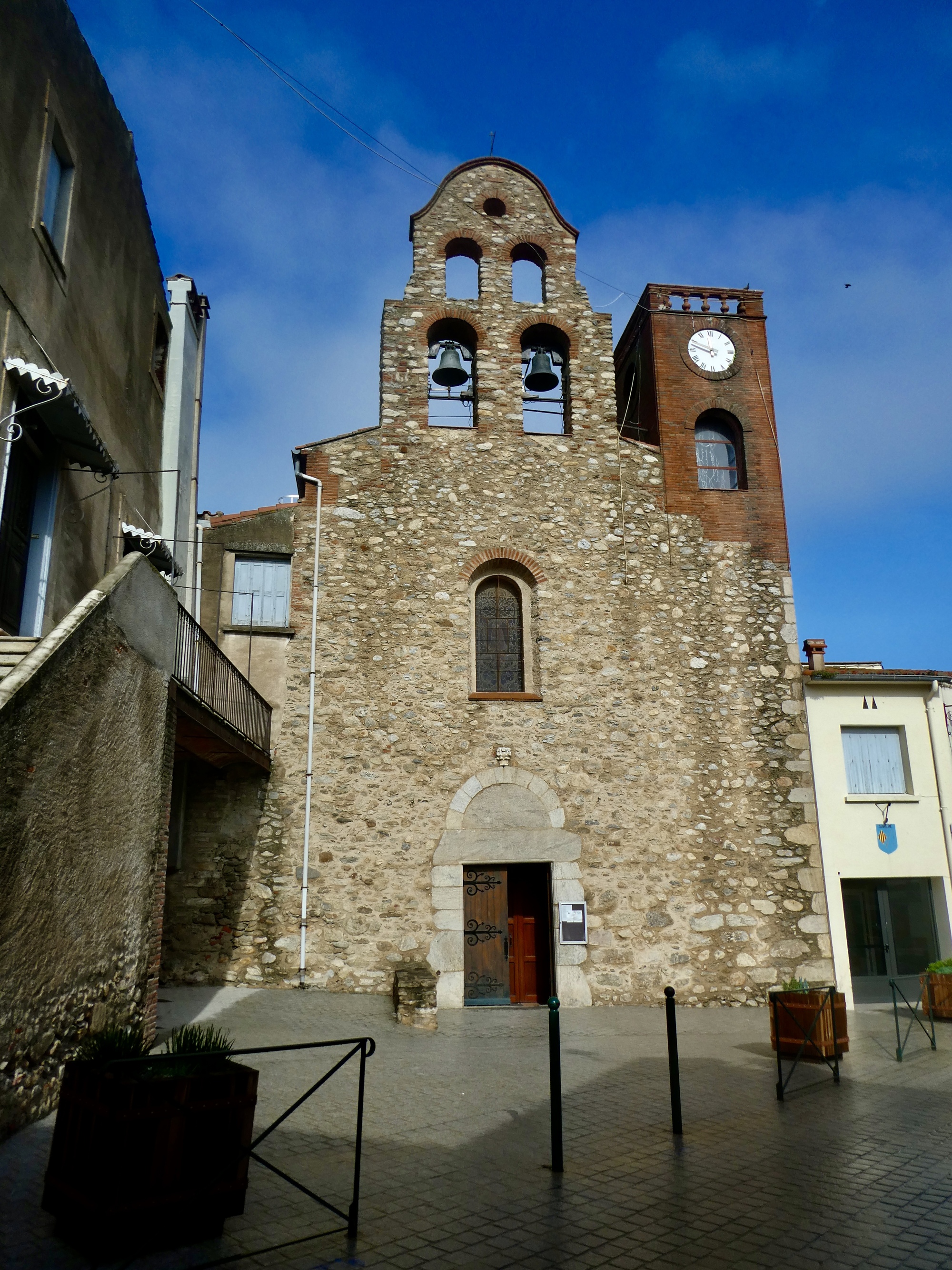 My next stop is the cathedral at Elne, eight miles away on the other side of the Tech River. Or so I think, but before I get there I’m held up by the unexpectedly interesting town of Ortaffa. Of special interest there is the Eiffel Tower of Ortaffa, its bell tower built in 1900 and inspired by the tower in Paris. When I first saw it I thought immediately of the Eiffel Tower, and as I was leaving a man walking by confirmed it was modeled after the original and said I should google it.