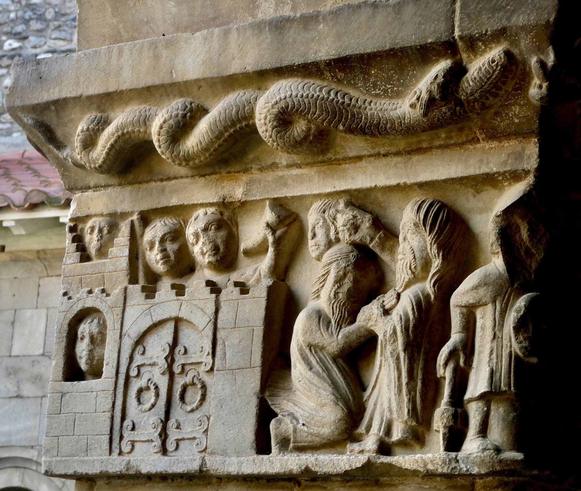 As impressed as I was by the cloister at Saint-Génis-des-Fontaines, the one in Elne is probably even better. Built between the 12th and 14th centuries, the capitals of its columns represent a variety of biblical themes intermixed with lions, griffons, peacocks and the like. I tried to correlate the capitals to the cheat sheet in English that I was provided when I entered, but it didn’t really help - I’m pretty sure I recognized Adam and Eve and the three magi, but failed on Saint Paul on the road to Damascus. I was right there with the lions, griffons and peacocks though.