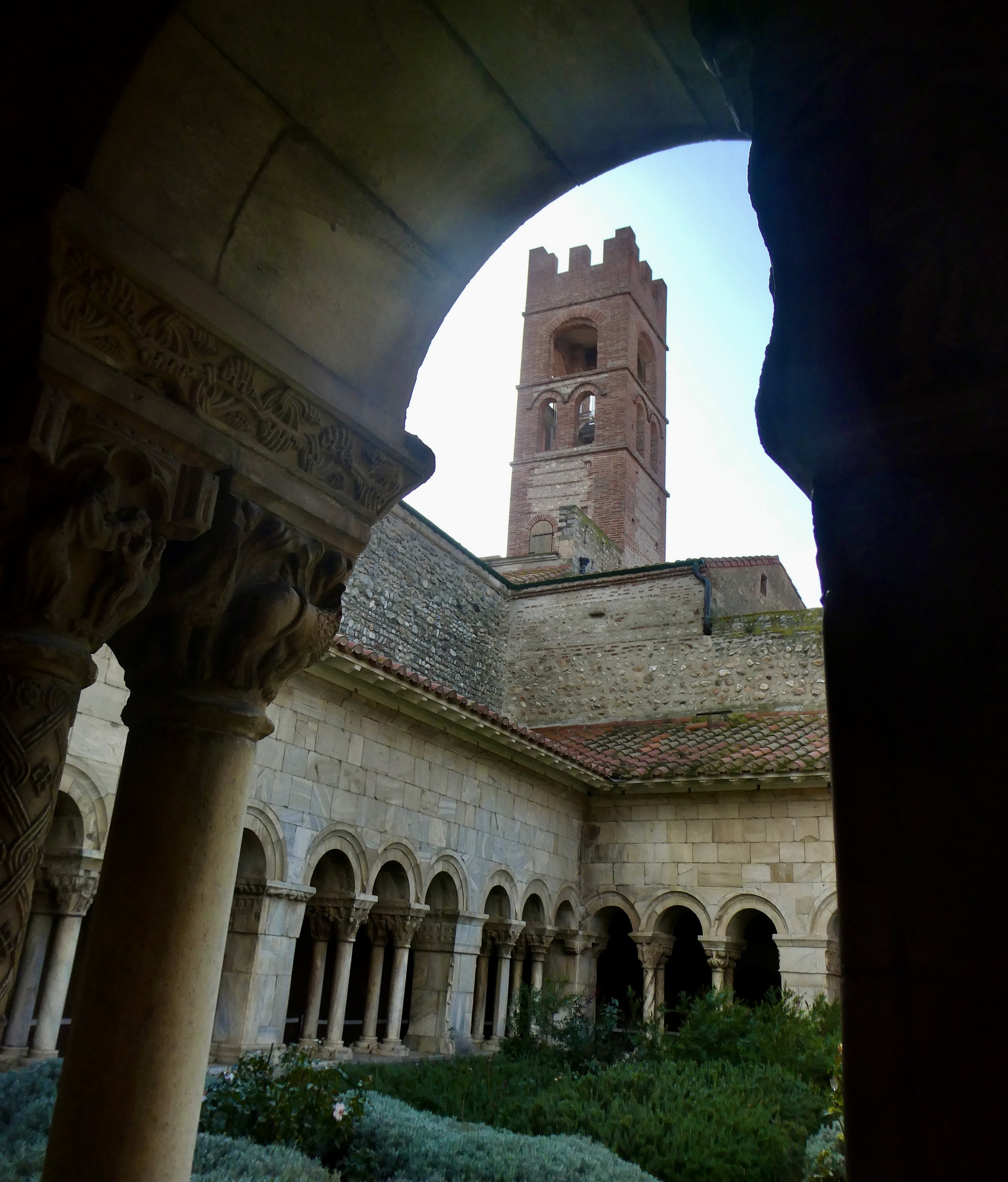 Elne startled me when I came to it, the fortified knoll at its center making me think of a Tuscan hill town. That wasn’t the only thing that set me aback though. Elne was obviously a prosperous and important place in the past (it was the provincial capitol of Roussillon before ceding the position to nearby Perpignan), but it’s another place I’d never heard of before. Money seeing it now by chance because Suzanne described it in the post she linked to me yesterday. There seems to be no end of places like this in France.