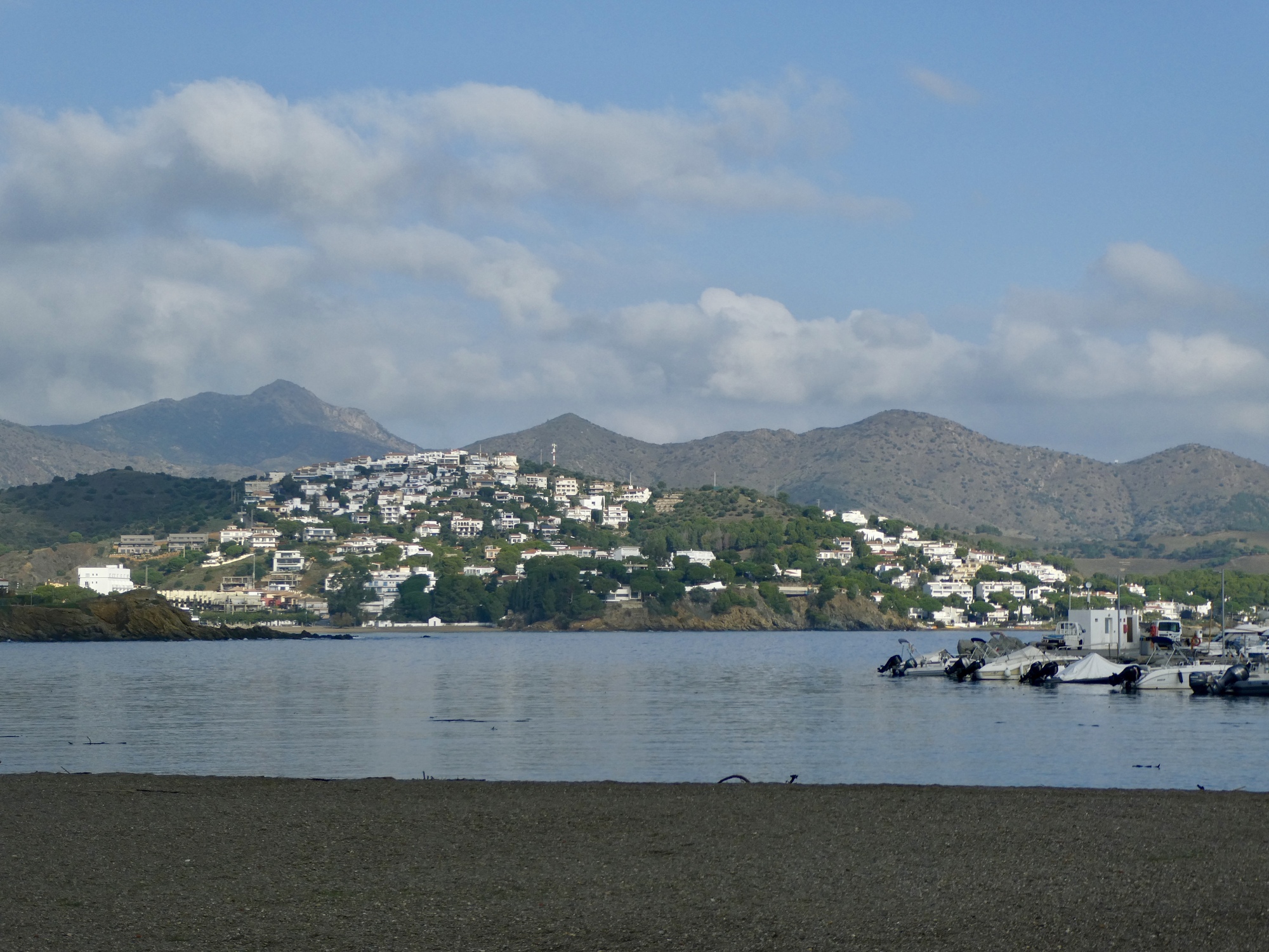 My ride starts out easier, with a reasonably level five mile ride west on the coast road to the outskirts of el Port de la Selva, a scenically place town jammed against the slopes of Cap Creus. I hope to bike back this way at least once more before we leave Llançà so I don’t stop for photos until right at the end when I come to a clear, broad view of la Silva, a town we at first thought we’d stay at before deciding on quieter, less expensive Llançà instead.