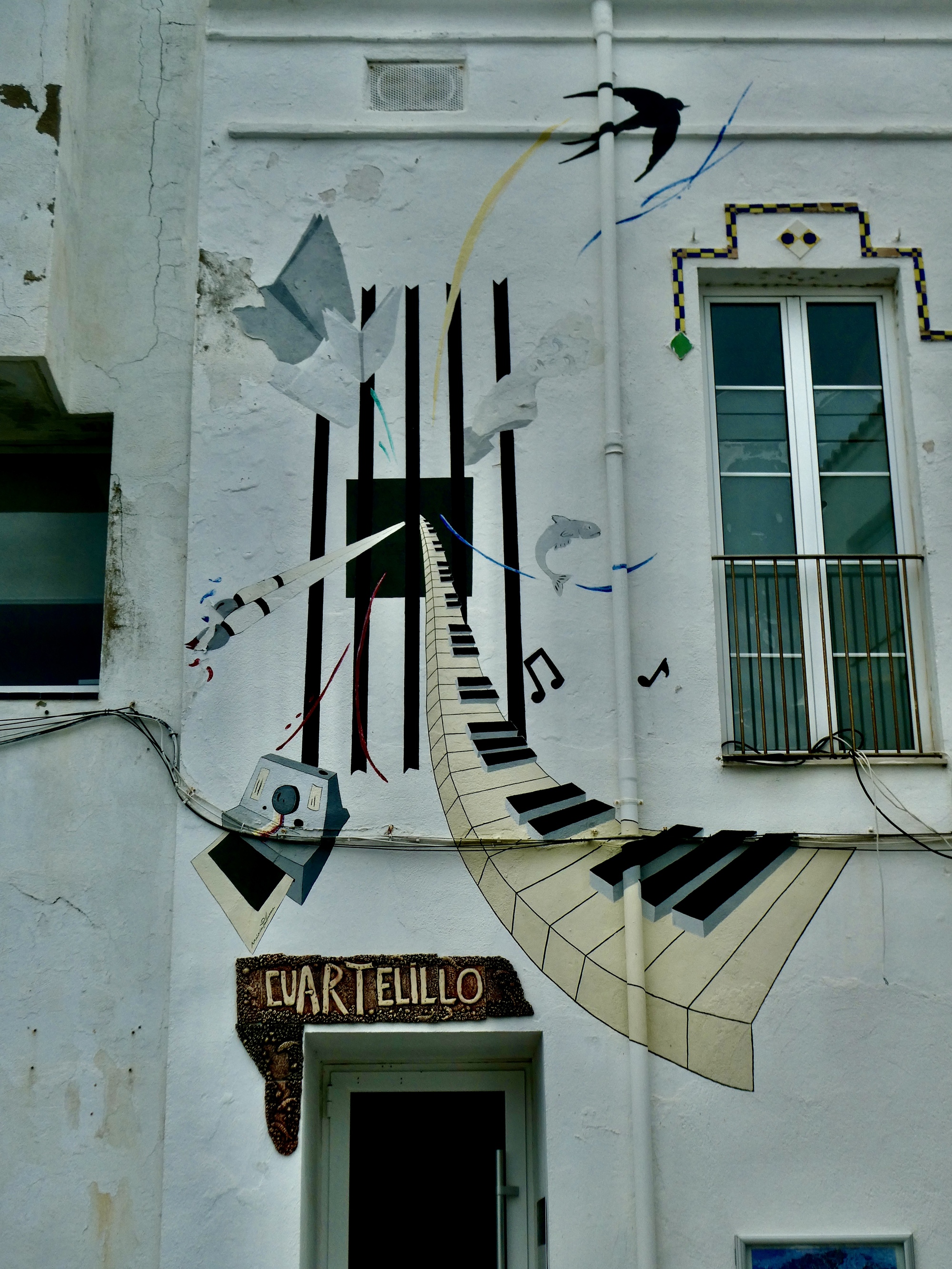 It was very pleasant. It was still comfortably warm when we started and comfortably cool when we returned. The views from the top were inspiring, some crag-martins were cavorting around the cliffs below us, we saw what’s claimed to be the largest mural in the world, and on the way down we saw a beautiful calico cat that slunk into a sheltered hole in the brush before Rachael could approach her because she (the cat, not Rachael) got spooked by an approaching dog.