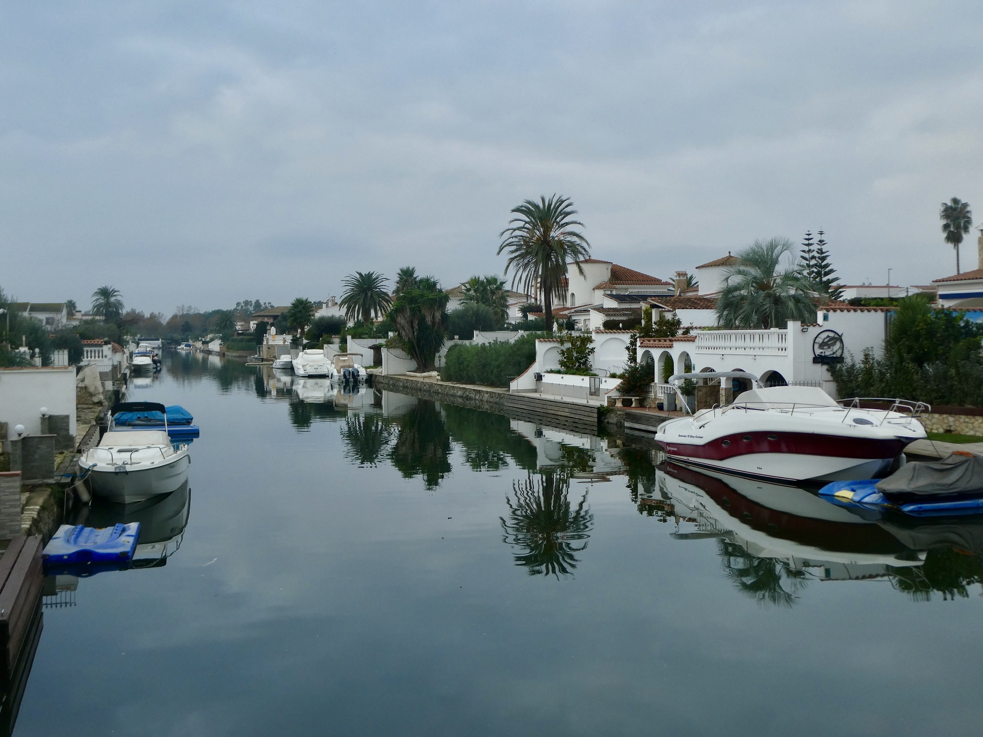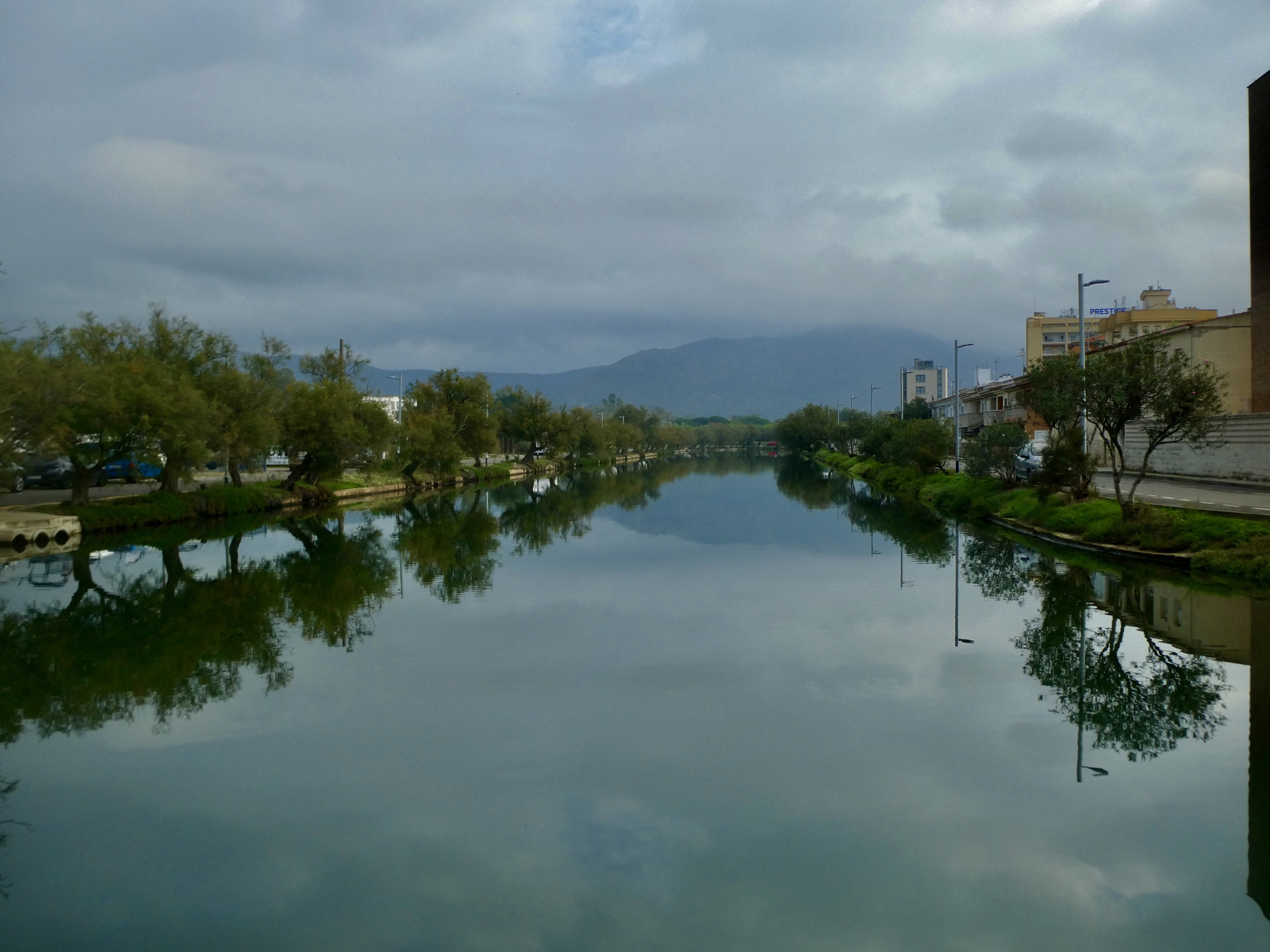 Here I’m crossing Empuriabrava, a resort community spanning one of the world’s largest planned marinas. Dozens of rectilinear channels chop up it up, and here I’m crossing it on one of the few through roads.