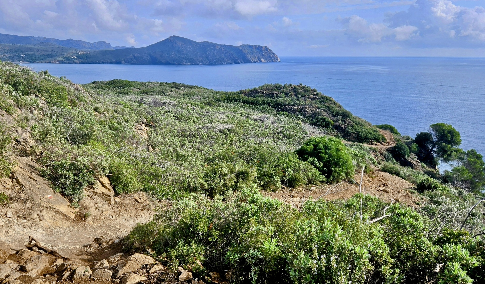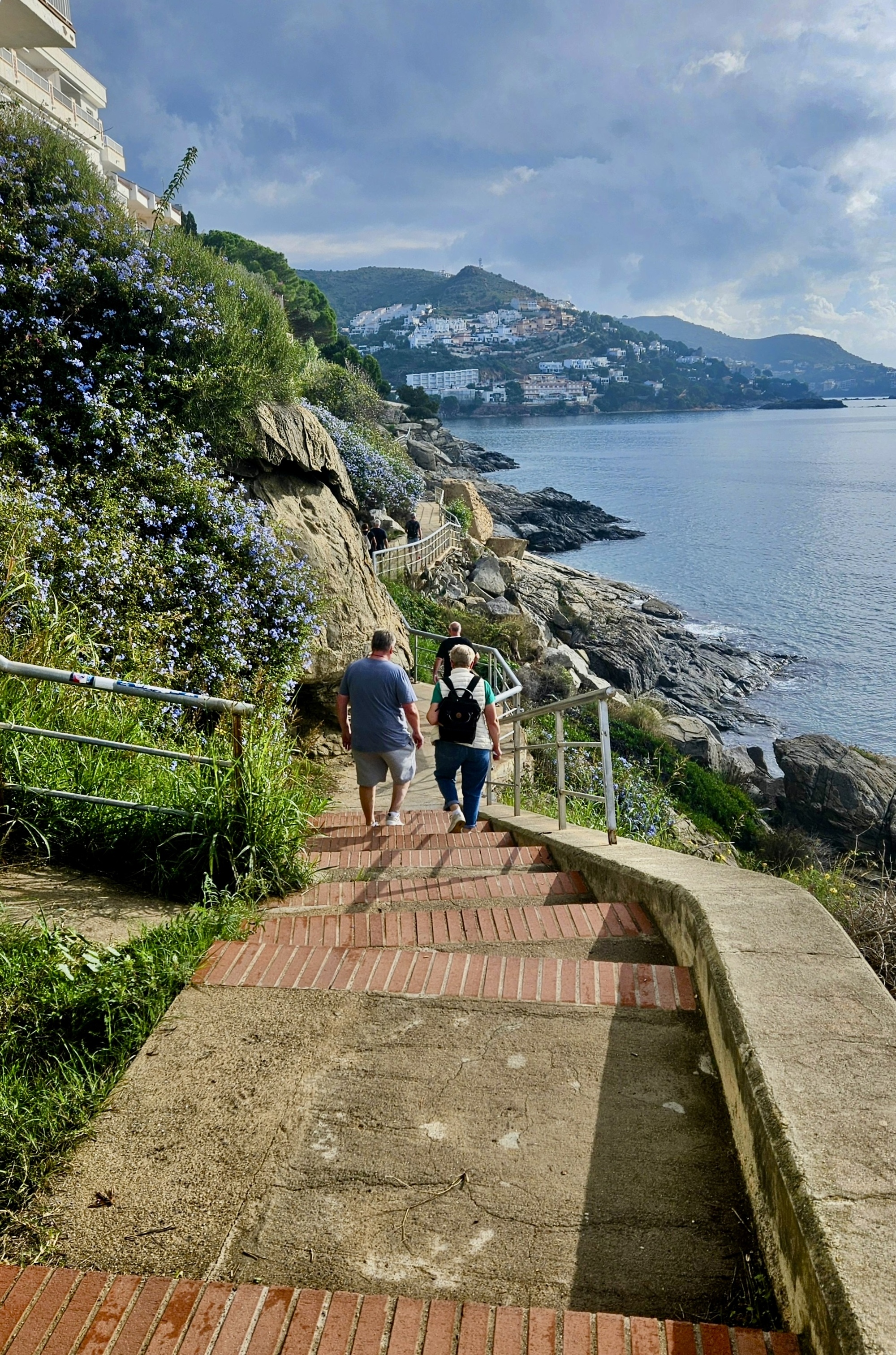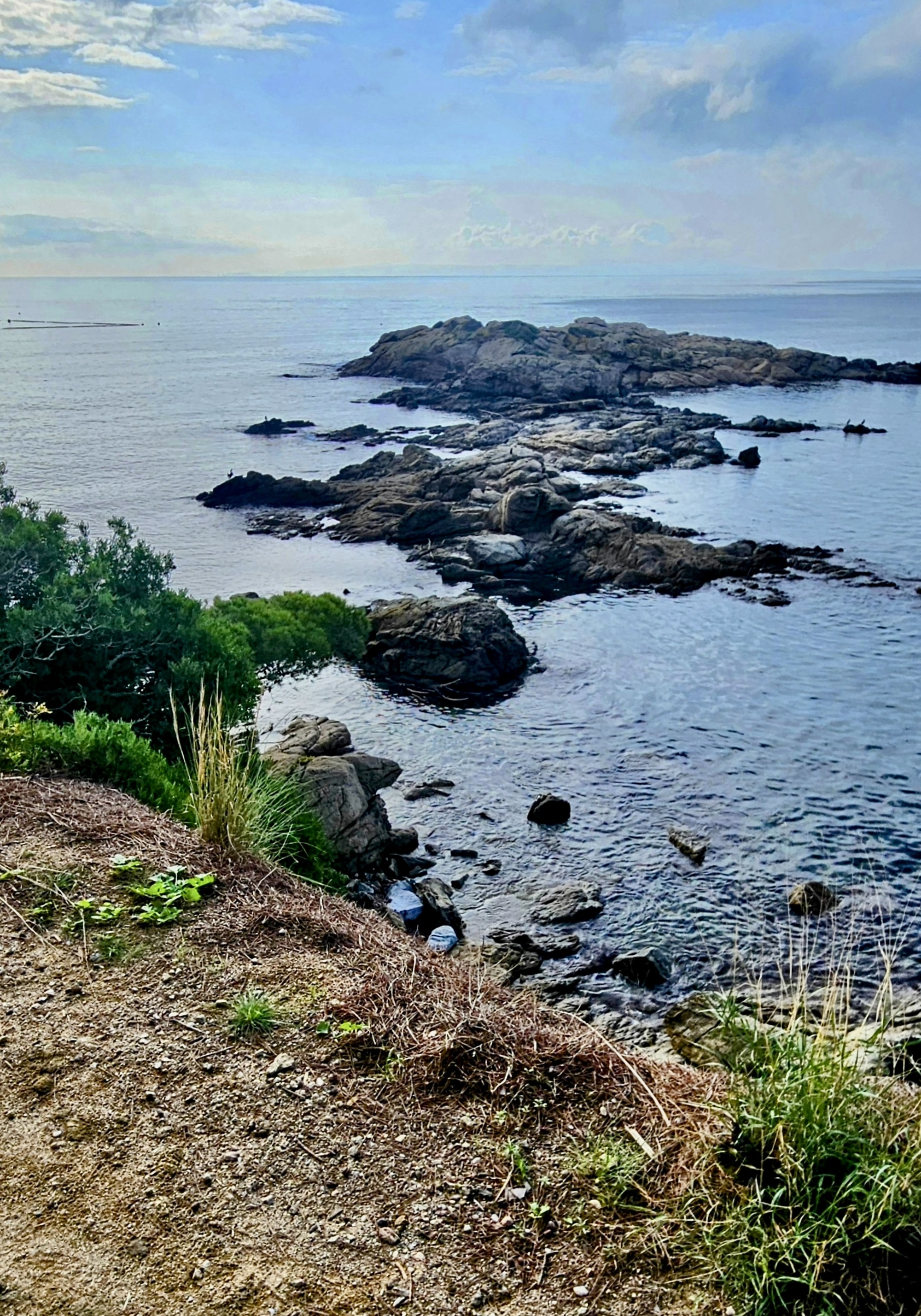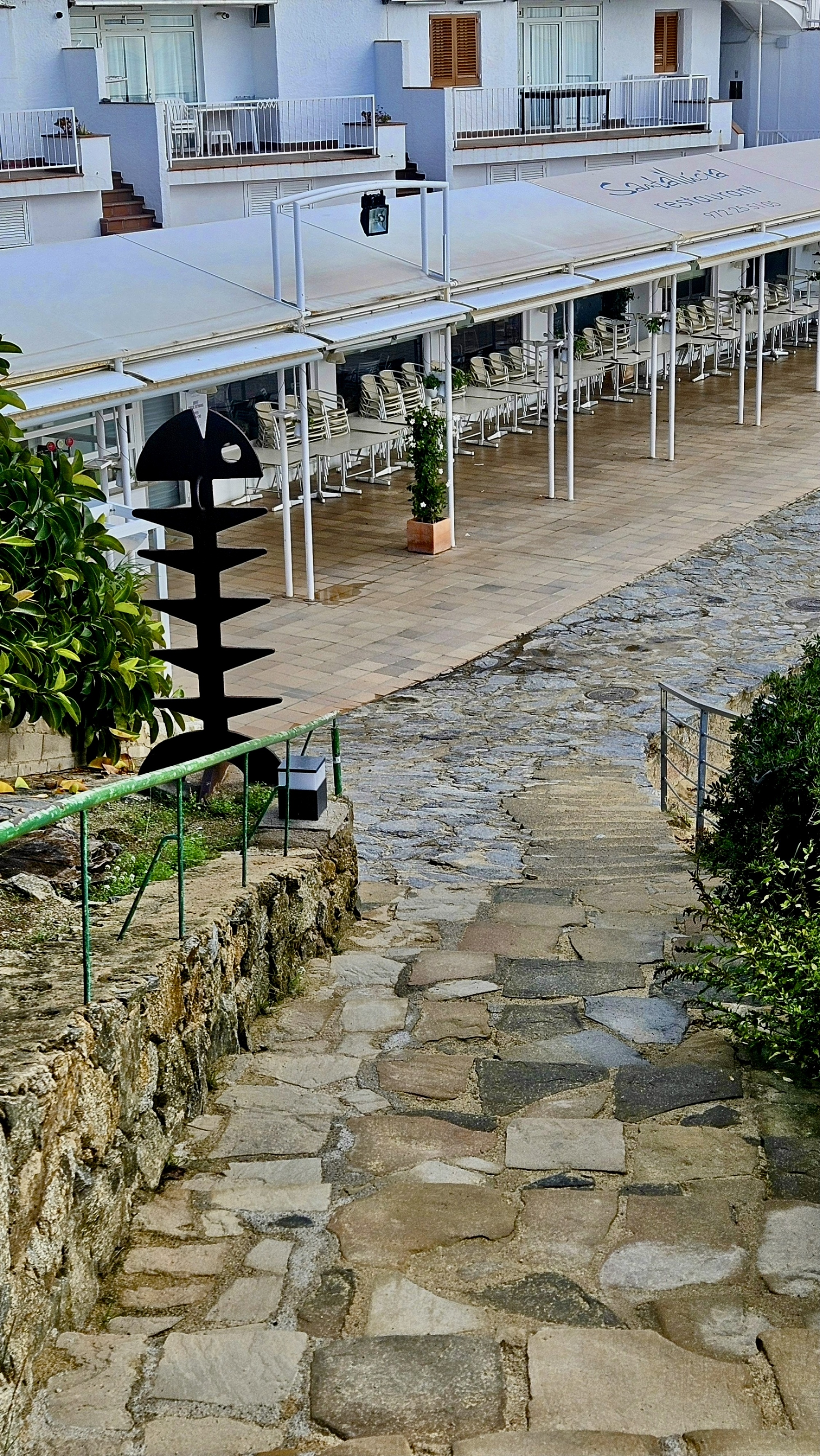 I had thought that I’d bike over to Cadaques and back today, but I just don’t have the heart for putting in that much work; and besides that I’ve got significant mechanical issues with the bike that make me think I don’t want to do anything too aggressive before getting it home for an overhaul. For one thing, one of my brakes is failing and resisting my efforts to improve it. For another, it’s hard for me to go anywhere faster than about 10 mph unless I’m freewheeling downhill. I’ve lost the use of my largest chainring, but also of the two or three smallest gears on the rear cluster unless I want to listen to some serious grinding as I bike along. Biking now reminds me of our first tour of Europe, when my derailleur broke 300 miles from Paris and I got the rest of the way by removing the derailleur and shortening the chain, riding it as a one speed the rest of the way. It’s why I appear to be pedaling so fast when you see me in videos lately.