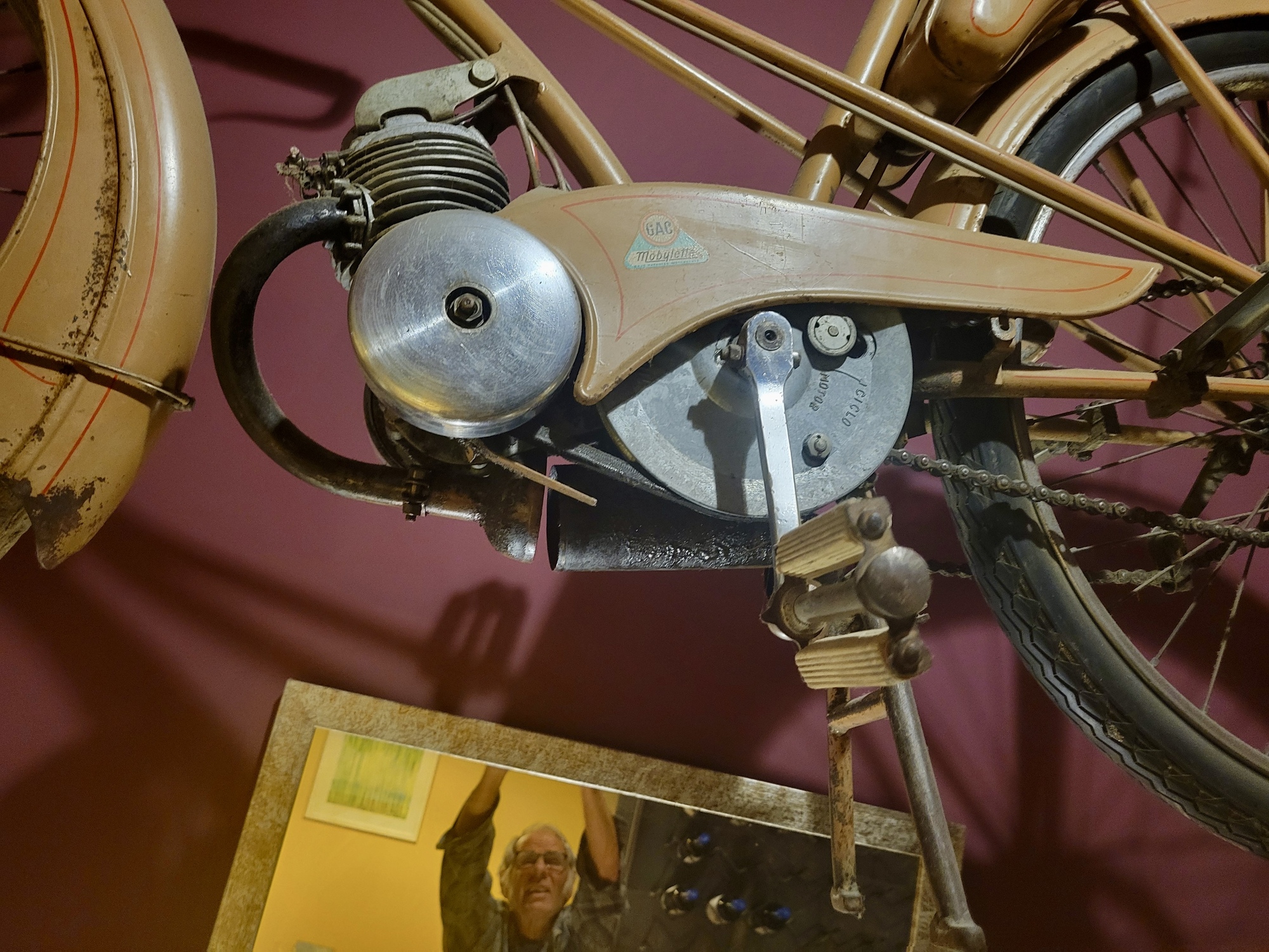 And when lunchtime comes we walk down to the same restaurant we ate at yesterday - because it’s close, we liked its menu, it’s economical, and I want a chance for a closer shot of that wall mounted vintage motorcycle because I don’t know yet that Bob Koreis beat me to it and already figured out it’s a Motobecane.