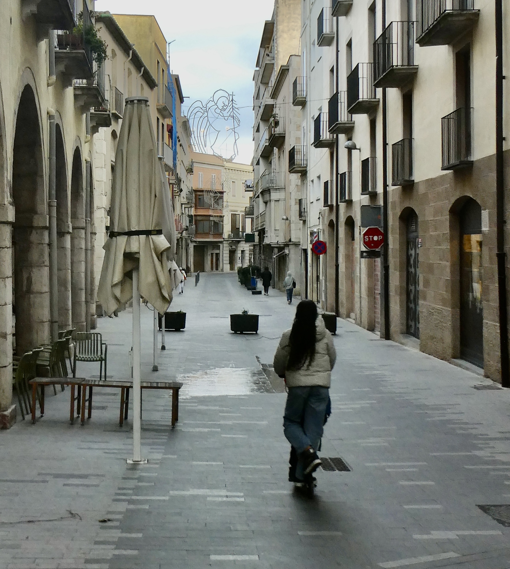 And after that we go back to our chilly apartment and hang out until four when I muster up the gumption to wander around the neighborhood so you can get a picture of Figueres. The wind has died down, but it’s still chilly enough that the streets are largely empty and the few people out are well layered and moving briskly. It’s actually quite a nice time to have a look at the place, a town I like very much and would be happy to return to someday.