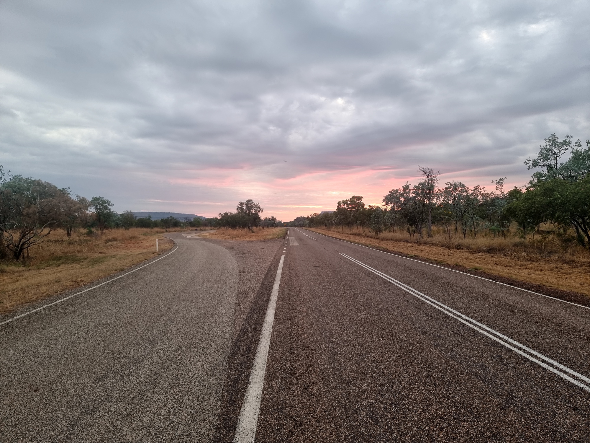 It's nice riding early in the morning. There's only an occasional road train for traffic.