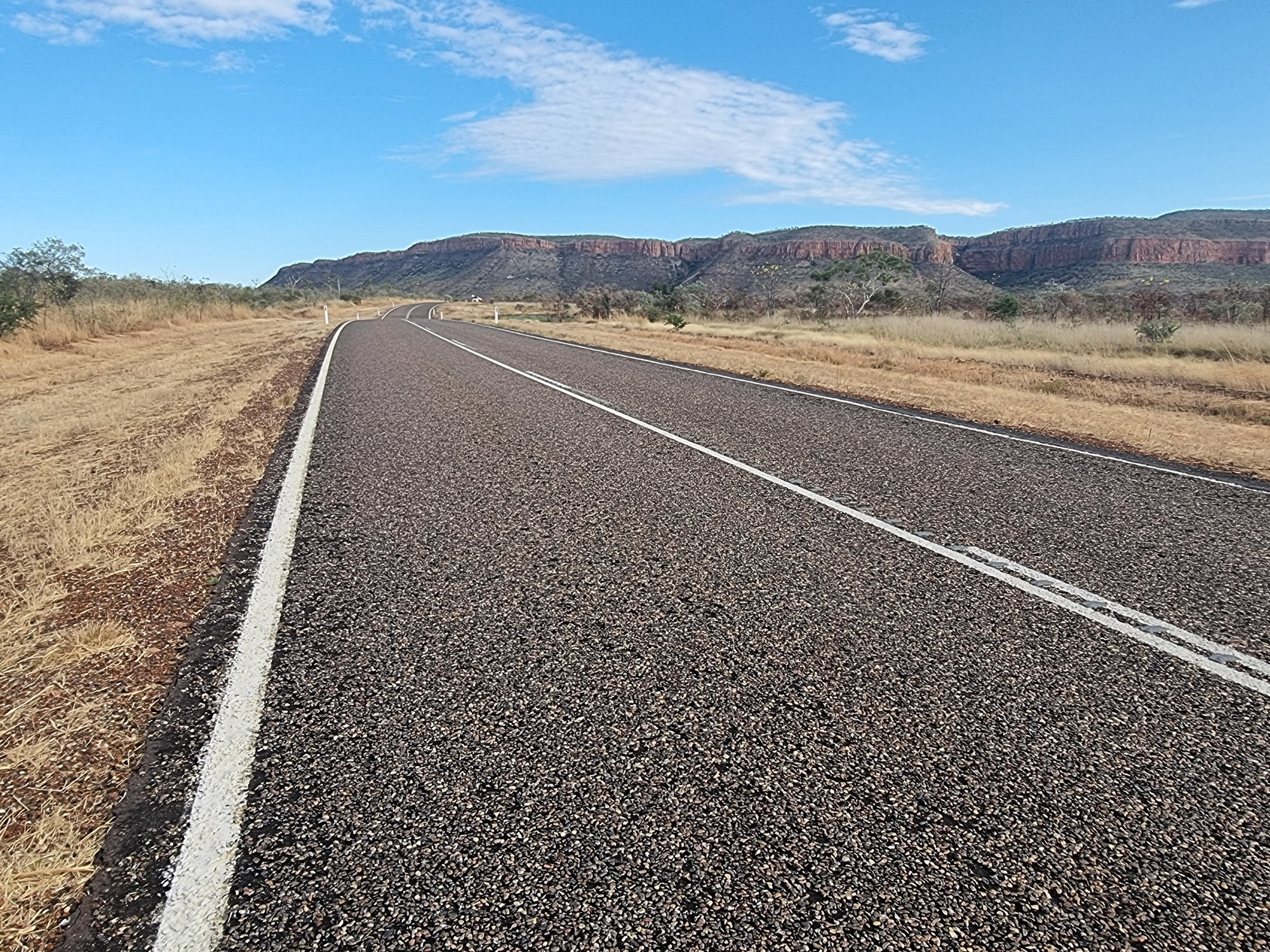 After maybe 8kms, I turned west on to the Gibb River Road. It was still dark so there is no road sign photo. The road is still bitumen too.