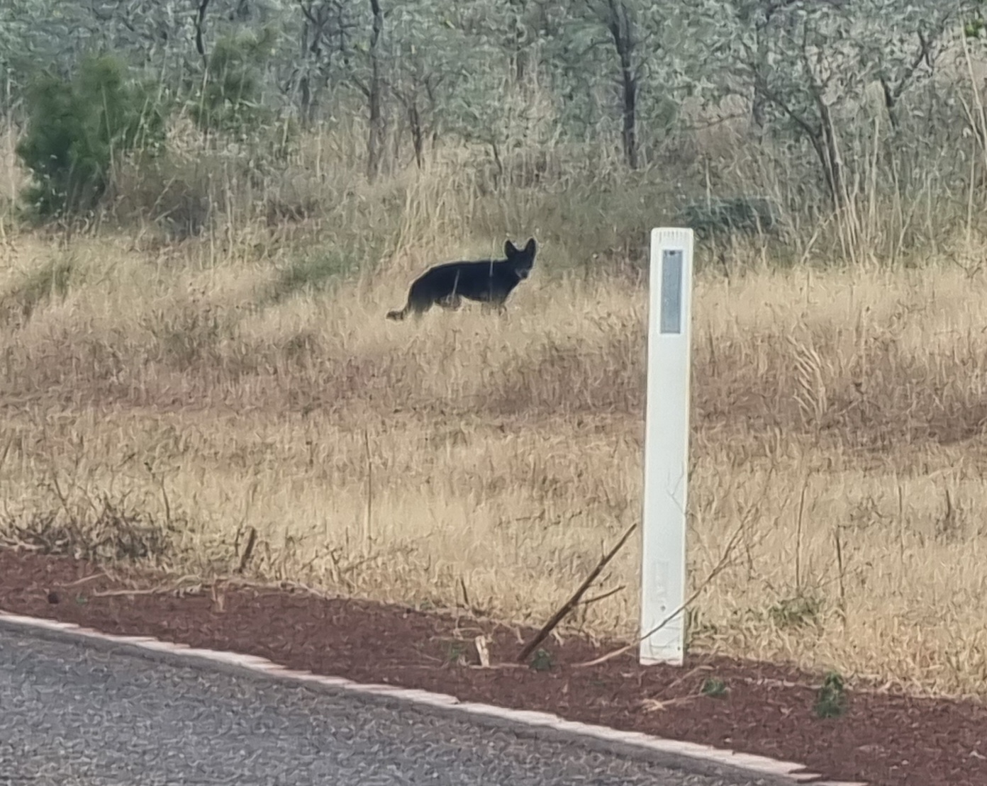 This one was walking down the road probably looking for roadkill. Wild dogs are a big pest in Australia. They usually run away from humans.