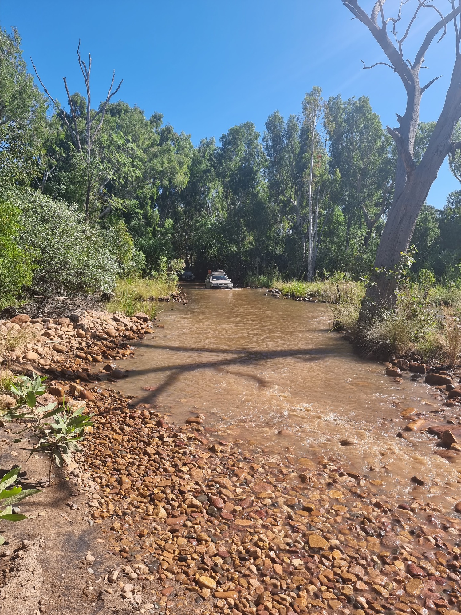 This is my first water crossing this year. I guess there are no salties. The water was above my knees.